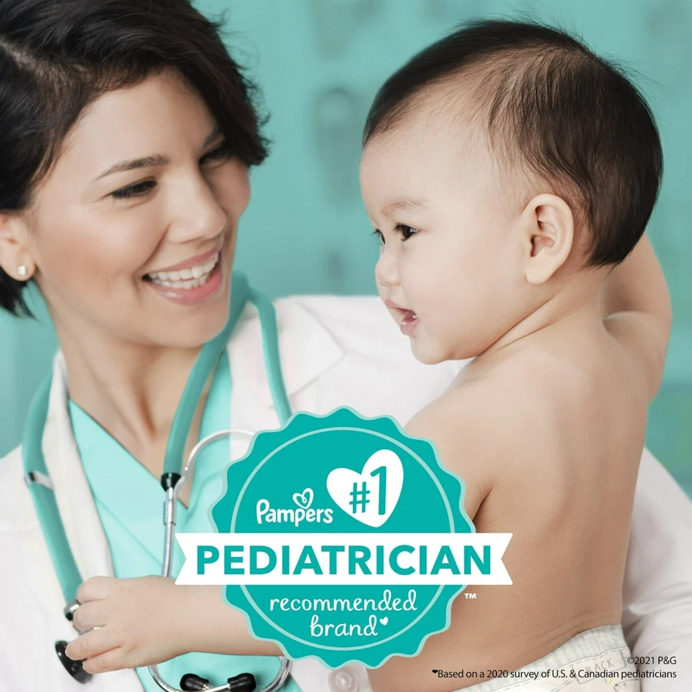 Product details A good night's sleep starts with a great diaper, and Pampers Baby-Dry diapers give you and your baby up to 100% leakproof nights and happy mornings. Made to protect your baby's delicate skin, our exclusive LockAway Channels absorb wetness and lock it safely away, while our protective Dri-Weave Liner helps keep skin healthy. Plus, our Baby-Dry Diapers are hypoallergenic and completely free of parabens and latex.* These are just a few of the many reasons Pampers is the #1 pediatrician recommended diaper brand-and your baby's best bet for comfy protection. Pampers also keep messes to a minimum. To help contain leaks and prevent blowouts, our Baby-Dry diapers feature all-around stretchy sides and large tape fasteners for a secure and comfy fit. Plus, they come equipped with our Dual Leak-Guard Barriers that are specially designed to protect around the legs, where leaks tend to happen most. And when your baby is due for a diaper change, our handy Wetness Indicator lets you know. No need for guesswork.Use Baby-Dry diapers with our Pampers Sensitive Wipes to help keep your baby's skin healthy and prevent irritation. New & improved! Packaging and prints may vary. Ships in 100% recyclable packaging. *Natural Rubber Pampers Baby Dry Diapers Size 6 144 Count Up to 100% leakproof nights and happy mornings with LockAway Channels Helps prevent leaks with stretchy sides and large tape fasteners for a secure and comfortable fit Helps keep skin dry and healthy with Dri-Weave Liner Trusted protection-from Pampers #1 pediatrician recommended brand* (*Based on a 2021 survey of U.S. and Canadian pediatricians) Gentle on baby's delicate skin-hypoallergenic and free of parabens and latex* (*Natural Rubber) Use with Pampers Baby-Clean wipes to keep baby's skin clean and dry New Look! Product & packaging may vary. Ships in 100% Recyclable Box.