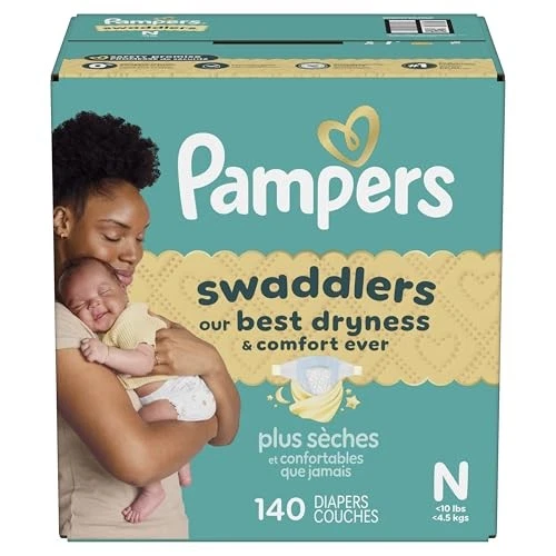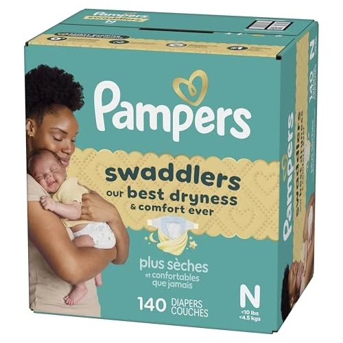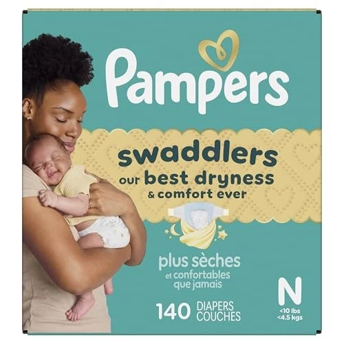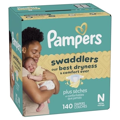 Pampers Swaddlers Diapers, Size 0 (up to 10 lbs), 140 Newborn, Product Details OUR BEST DRYNESS & COMFORT EVER: Pampers Swaddlers keep baby dry and are irresistibly soft to keep baby comfy. KEEPDRY LINER for 3X DRYNESS*: KeepDry Liner absorbs wetness and mess to help keep it away from skin, keeping baby 3x drier* for all-day and all-night comfort. (*Based on size 4 v. Luxury Diaper brand. 3 typical wettings of 75 mL.) SKIN-SAFE: Hypoallergenic and free of parabens, elemental chlorine, and latex** and dermatologically approved by the SHA (**No natural rubber) ALL-AROUND LEAKGUARD: Helps stop leaks even at the legs and back—for worry-free days and nights. COMFORTABLE SLEEP: Pampers is the #1 Brand*. For sleep. (*Based on Nielsen sales last 52 weeks) PEDIATRICIAN RECOMMENDED: Trusted protection from Pampers, the #1 Pediatrician Recommended Brand* and #1 Choice of NICU Professionals** (*Based on 2023 survey of U.S. and Canadian pediatricians, **Based on a 2025 survey of NICU Professionals) TRUSTED BY PARENTS: Swaddlers is #1 Choice of Parents* and is from Pampers, the Most Awarded Diaper Brand** (*Based on Neilsen sales L52W **Based on US P&G study of awards given 2021-2025) Product and Packaging May Vary Wrap your baby in our best dryness and comfort ever. Try Pampers Swaddlers. These Pampers disposable diapers are designed with a KeepDry Liner and irresistible pillowy softness to keep your baby dry and comfortable from their very first days and beyond. Plus, they’re drier than the Luxury Diaper for all-night comfort*. Pampers Swaddlers are dermatologist tested, hypoallergenic, and free of elemental chlorine, parabens, and latex** to protect babies’ sensitive skin. Pampers Swaddlers surround your baby with up to 100% blowout and leak protection, thanks to their absorbent core and All-Around LeakGuards. Trusted by pediatricians and parents alike, Pampers Swaddlers are from the Most Awarded Diaper Brand^, the #1 pediatrician recommended brand^^, Best of Babylist winner, and the #1 choice of parents^^^. Pampers has been providing products that prioritize comfort, safety, and effectiveness for over 60 years. Earn savings while you shop with Pampers Rewards. Every 10 scans = $10 off. Scan. Earn. Repeat. Use them with Pampers Sensitive Baby Wipes for healthy skin. Pampers Swaddlers are available in preemie diapers, newborn diapers, and size 1 through size 8. To find your baby’s ideal fit, just measure by weight and reference our available baby diaper sizes. Pampers preemie diapers (up to 4 lbs.), newborn diapers (up to 10 lbs.), size 1 diapers (8–14 lbs.), size 2 diapers (10–22 lbs.), size 3 diapers (13-26 lbs.), size 4 diapers (15–34 lbs.), size 5 diapers (20-37 lbs.), size 6 diapers (23-34 lbs.), size 7 diapers (26-50 lbs.), size 8 diapers (30+ lbs.). *Based on S4 Luxury Diaper Brand. 3 typical wettings of 75mL **No natural rubber. ^ Based on Awards Given 2021-2025 ^^ Based on 2024 survey of U.S. and Canadian pediatricians. ^^^ Based on Nielsen dollar sales L52W