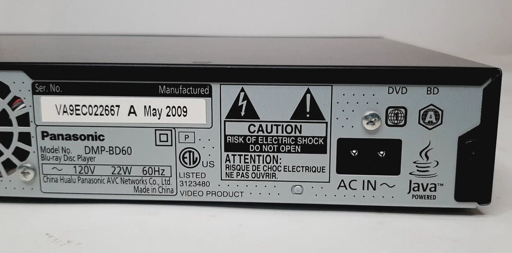 Panasonic DMP-BD60 Blu-Ray DVD Disc Player w/ Power Cord Fully Tested NO REMOTE Fully tested and works great - comes with power adapter but no remote control