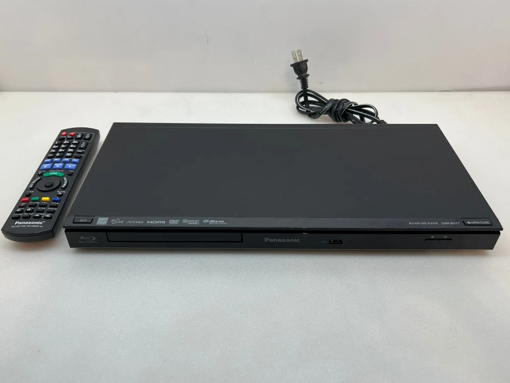 Up for sale is this Used Panasonic DMP-BD77 Blu-Ray Network Disc Player plus remote control and power cord. FREE SHIPPING !