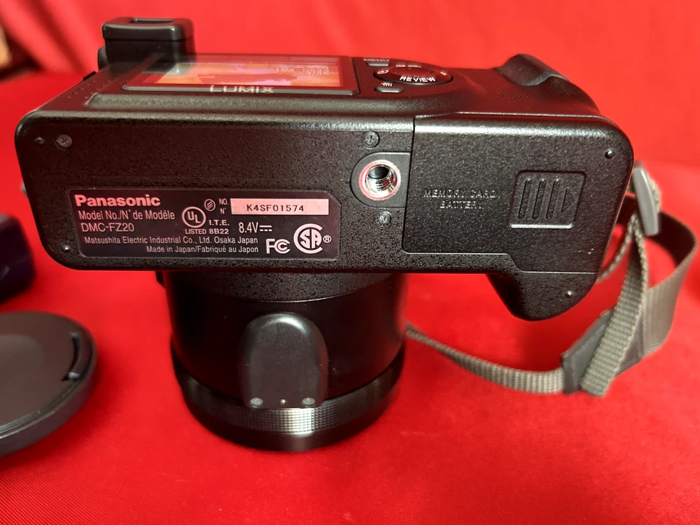 The Panasonic LUMIX DMC-FZ20 is a 5.0MP digital camera in a sleek silver color. It features a 12x optical zoom and digital zoom, along with a 2-inch screen for viewing photos and videos. This Panasonic LUMIX model is a digital SLR type camera with built-in speaker, histogram display, audio recording, date/time stamp, DPOF support, auto power save, and PictBridge support. The camera is powered by a Lithium-Ion battery and comes with a charger for convenient recharging. Made in Japan, this Panasonic LUMIX DMC-FZ20 is a reliable option for capturing high-quality images and videos.