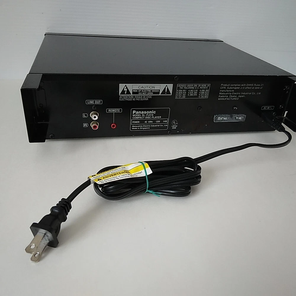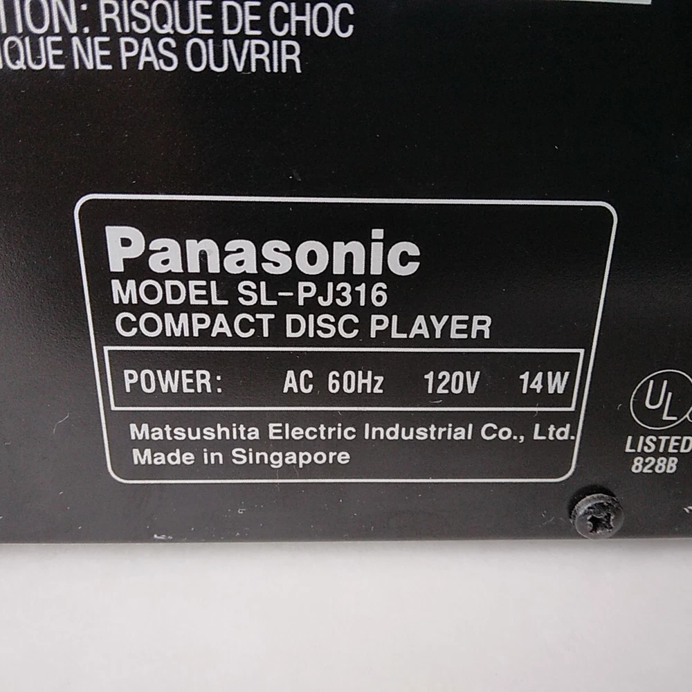 Item Weight: 6 lb 13 oz Product Line: Panasonic Model: Panasonic SL-PJ316 Screen Size: N/A Color: Black Country/Region of Manufacture: Singapore Brand: Panasonic Audio Inputs: N/A Item Height: 4" MPN: SL-PJ316 Connectivity: N/A Type: CD Changer Item Width: 12-1/2 Playable Media Format: CD Features: CD Player CD Changer Capacity: 1 Audio Outputs: Stereo L/R RCA Item Length: 14" Storage Capacity: N/A