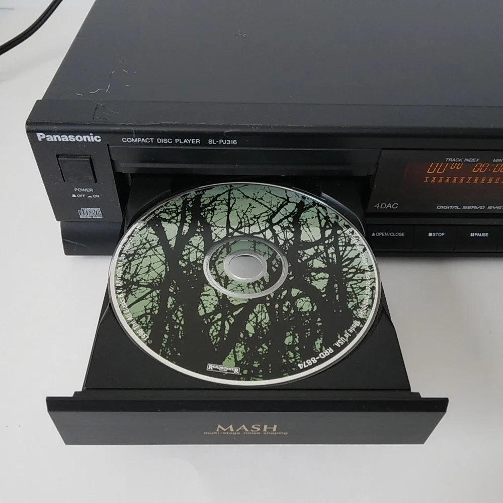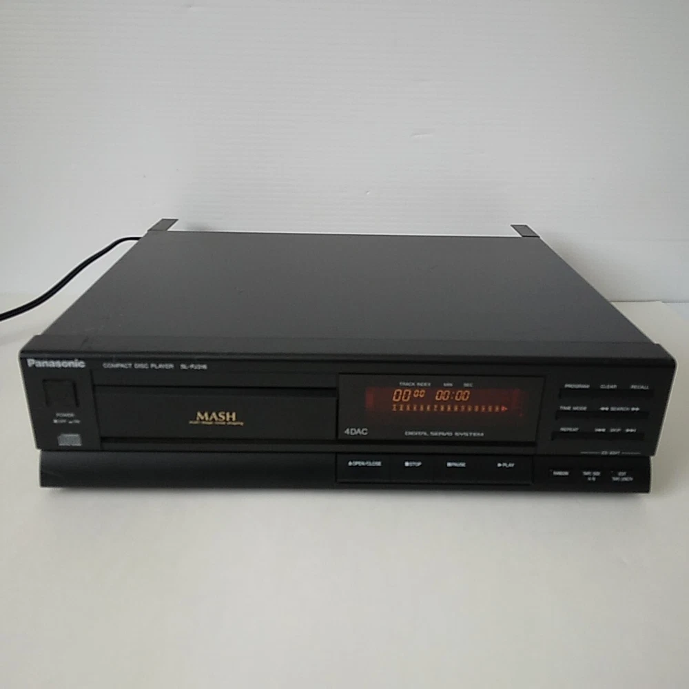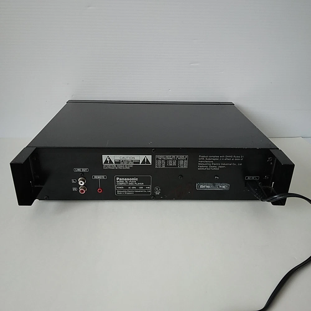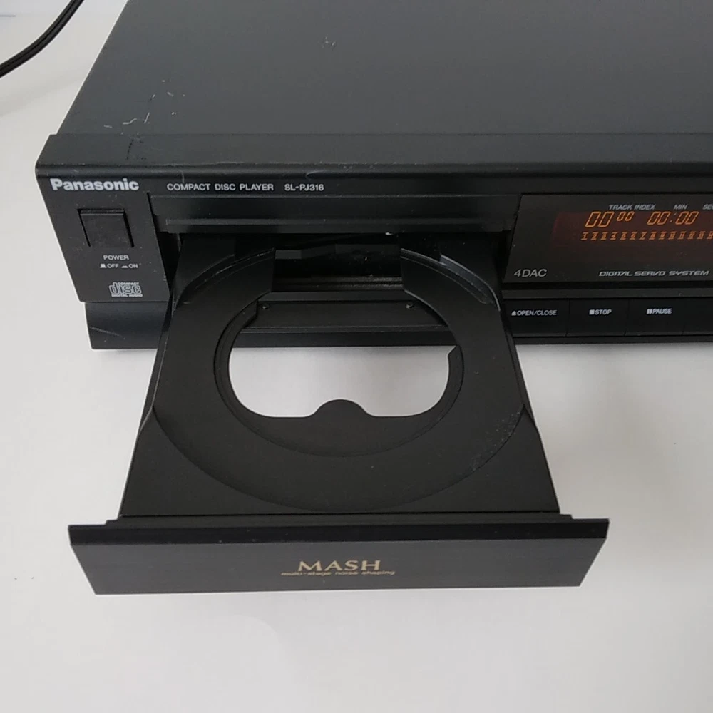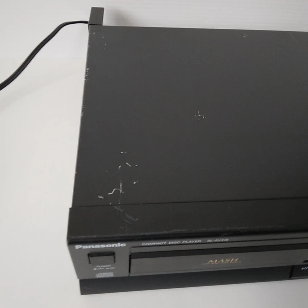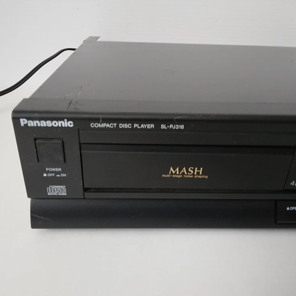Panasonic SL-PJ316 Shelf CD Player. This CD Changer has been tested with speakers on all functions and works well. Picture 3 shows testing with a small active speaker. Pictures 4 to 9 show CD testing. Both left and right channel work well. This SL-PJ316 is in acceptable cosmetic condition all around. Some scratches and edge wear. See pictures for a detailed look. Item will ship well protected. Thanks for the interest in this CD Player.