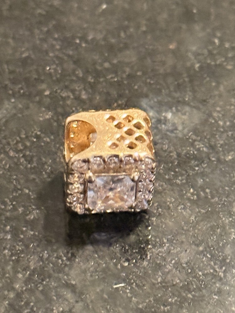 The Authentic Pandora 14k Solid Gold Sparkling Halo G585 ALE Charm is a luxurious charm made of yellow gold with a metal purity of 14k. It features a main stone of cubic zirconia, set in a charming style. This charm is from the brand PANDORA and is crafted in Thailand. It is a standalone piece that cannot be resized or personalized, making it a perfect addition to any charm bracelet or necklace for a touch of elegance and sparkle.