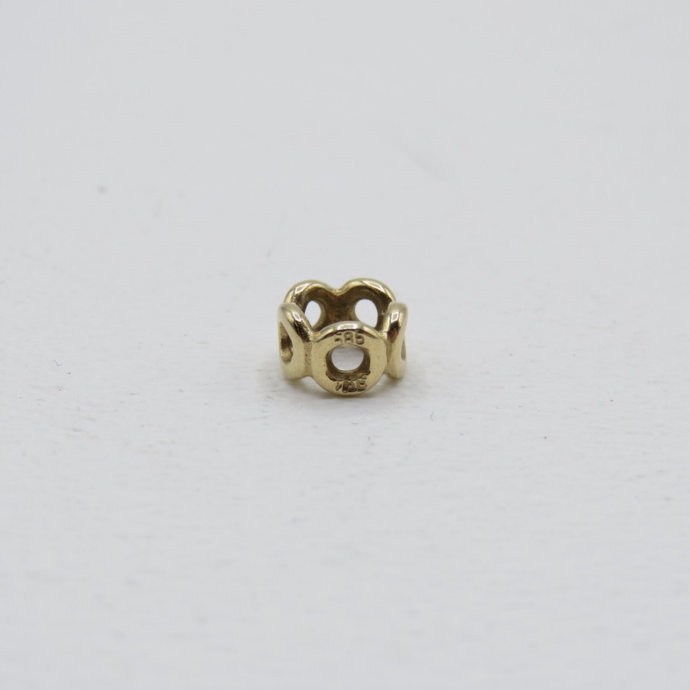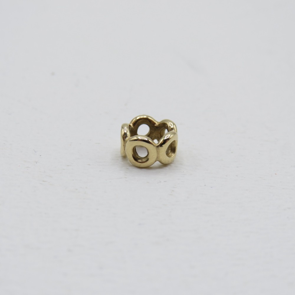 You are looking at a Pandora 14k Yellow Gold Openwork Circles Spacer Charm Bead This item is in good previously owned condition! The charm weighs approximately .9g. Please see all pictures for details! About Us Customer service is our #1 priority! If for any reason you are dissatisfied with your purchase we offer a 30 day money back guarantee unless otherwise noted in the listing (AS-IS/For Parts - No returns.) We only accept items back in the condition that they were sent to you. Items that are listed AS-IS are not eligible for this money back guarantee. If you are unhappy with your purchase PLEASE contact us BEFORE leaving feedback or contacting eBay so we can work with you to resolve any problems. Shipping When we charge shipping to our customers we only pass on to our buyers exact shipping costs - no added fees. We offer combined shipping for multiple items purchased, so if you purchase more than 1 item from us, please wait for us to combine shipping costs. We require signature confirmation on all items that sell for $750.00 & more per eBay's selling policy. We also insurance all items that sell for $250.00 & more. PLEASE NOTE: WE DO NOT WORK/SHIP ON HOLIDAYS OR WEEKENDS! We use the eBay Global Shipping program for international shipping. DLLR License #991 Please note, we are not an authorized distributor or manufacture's representative of this item. *This product may contain a chemical known to the state of California to cause cancer and birth defects or other reproductive harm* Track Page Views With Auctiva's Counter