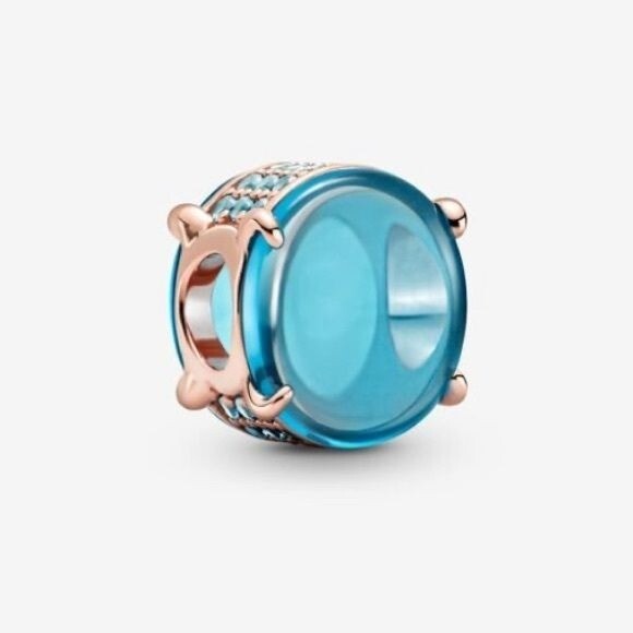 Authentic Pandora 925 Sterling Silver Blue Oval Cabochon Rose Gold Plated Charm New without tags, never worn. Set in 925 sterling silver Signed S925 ALE A perfect addition to your Pandora bracelet or great as a gift!