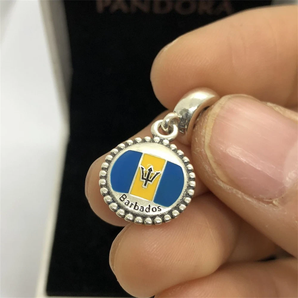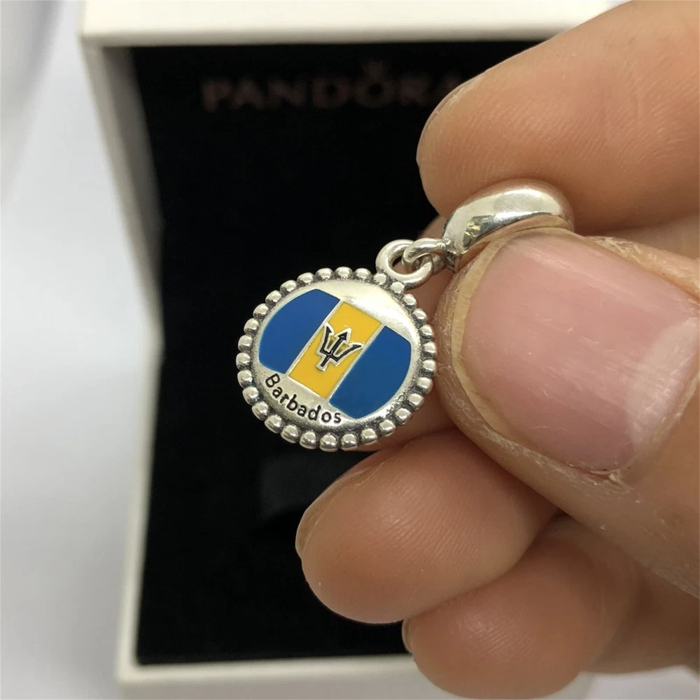 Pandora Barbados Flag Charm Travel Pendant S925 Silver with box