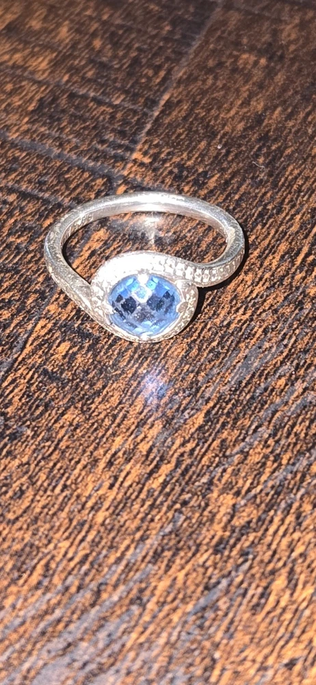 Pandora C2 Blue Crystal Elegant Radiant Embellishment Ring Size 6