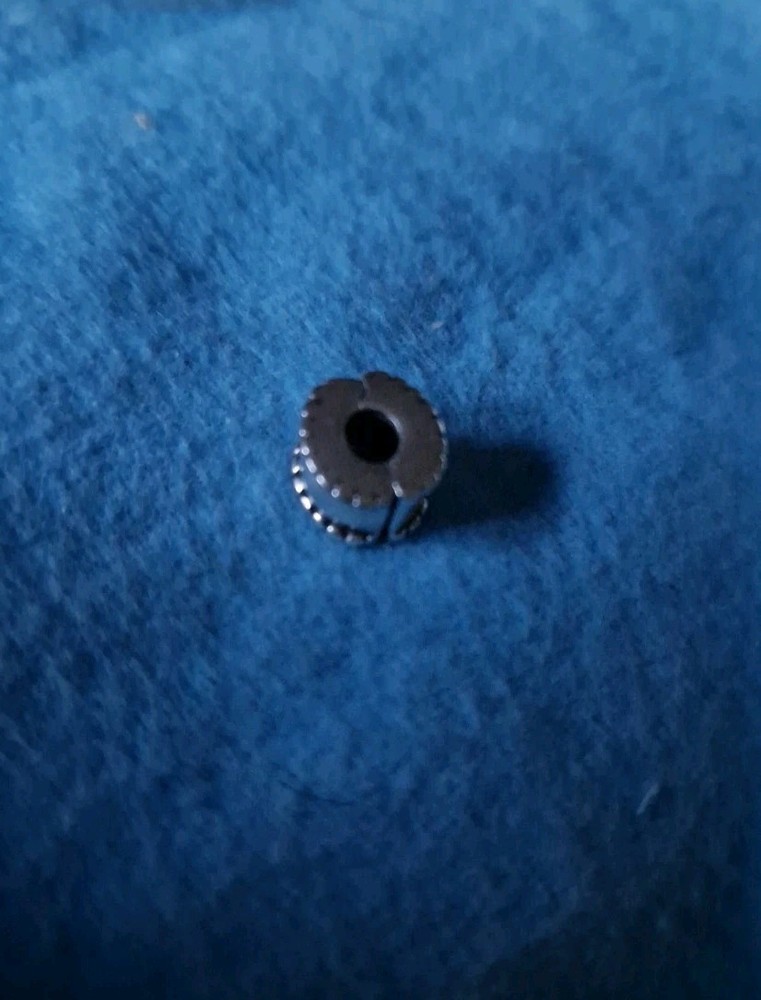 This Genuine Pandora Clip Charm is made of 925 sterling silver and is hallmarked. It features a simple clip style, part of the Pandora collection. The charm does not have a main stone and is in good condition despite being used. Perfect for adding a touch of elegance to your charm bracelet.