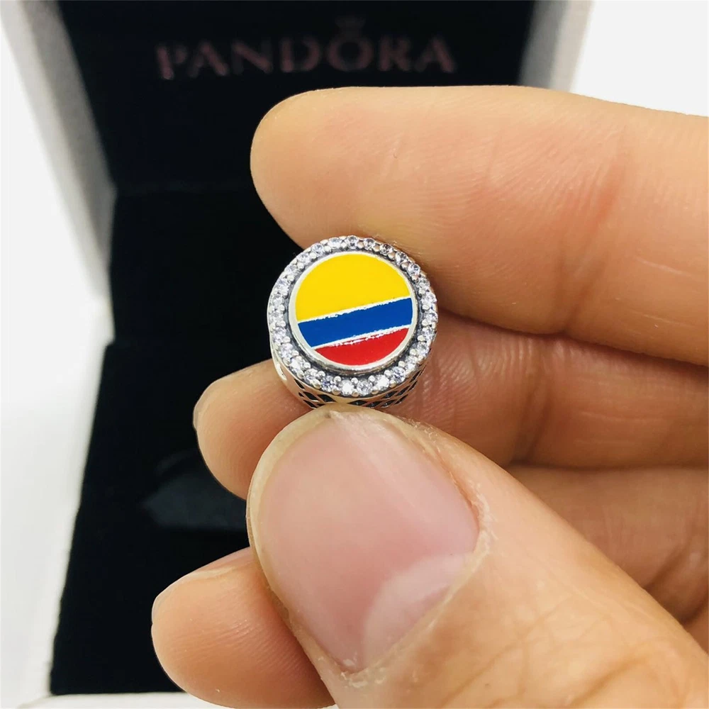Pandora Colombia Flag Bead Charm Travel Charm |S925 Sterling Silver Jewelry