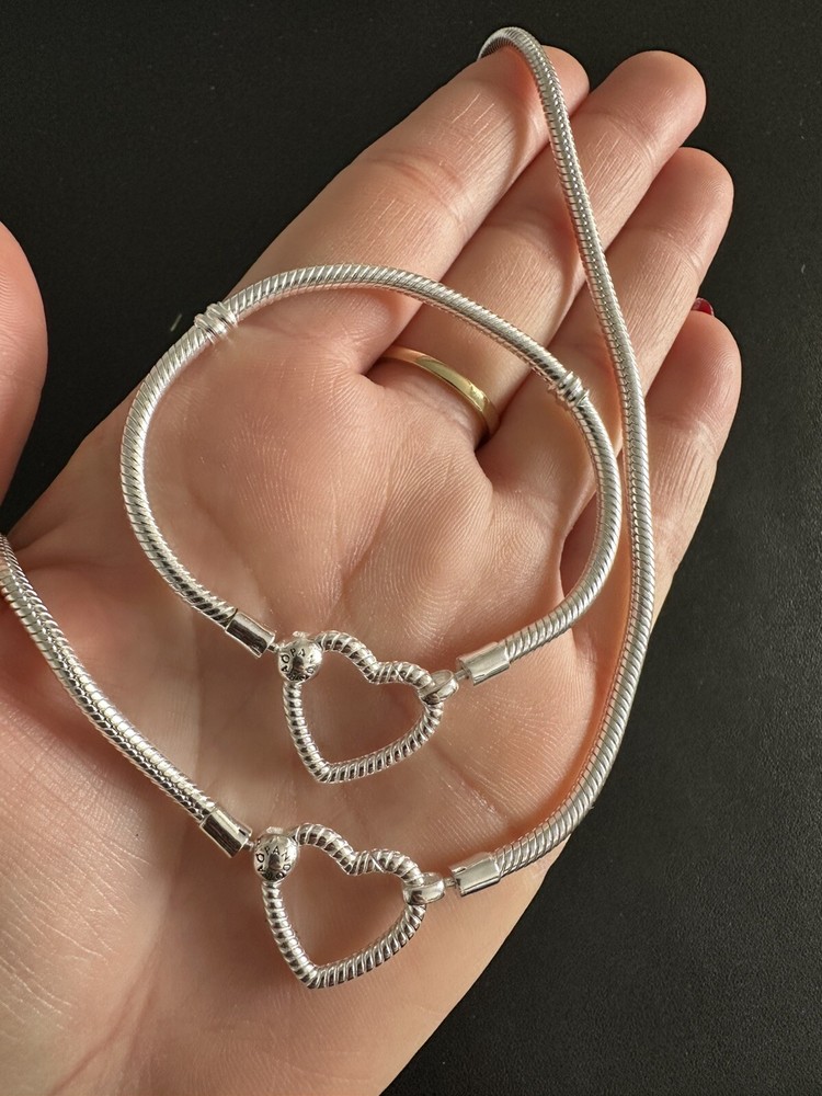 Wear more of what you love with this Heart Closure Snake Chain Necklace. Hand-finished with sterling silver, this fresh take on a much-loved Pandora design features our iconic snake chain and a heart-shaped closure. The closure can hold up to two dangles or pendants and spins for a touch of movement. Style this iconic necklace with your favorite charms and create your own personalized look. Bracelet size 6.6 inch (17 cm). Box included