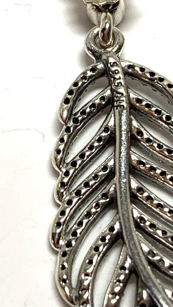 Crafted in sterling silver in a leather shape adorned with Cubic Zircona. Stamped S925 Ale. Butterfly clasp marked 925 Dangle 1.5" ThriftLOVE is a nonprofit thrift shop that offers mentored sustainable employment to adults with special needs and/or limited skill set.