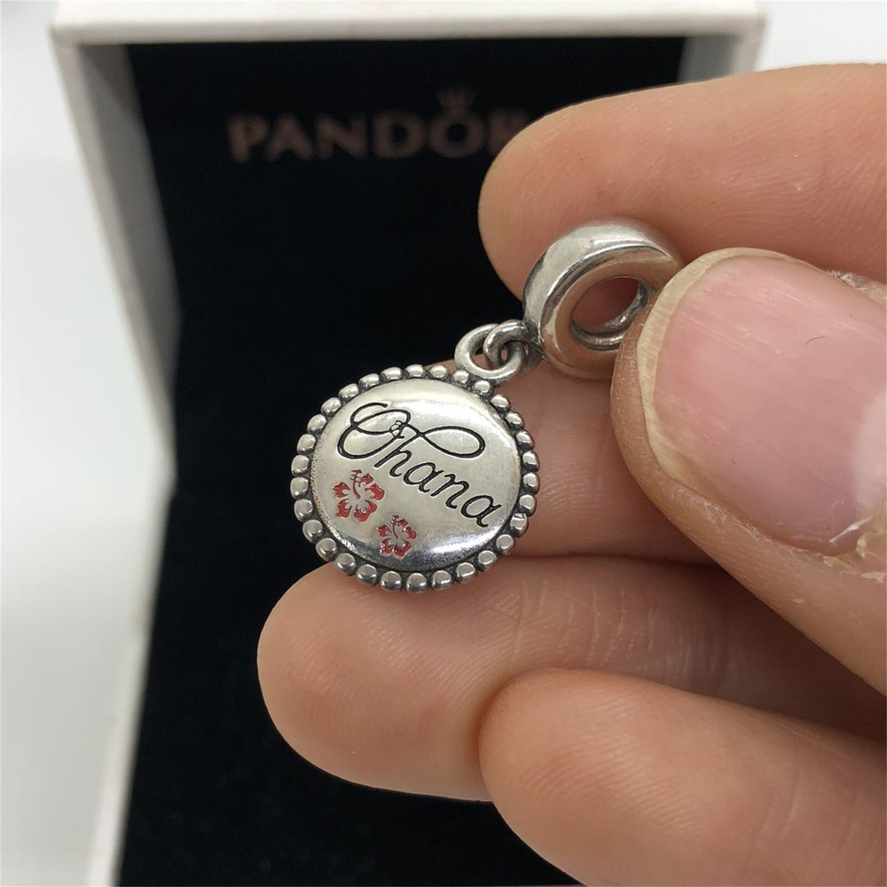 Pandora Ohana Pink Hibiscus Flower Hawaii Dangle Charm Ohana Charm