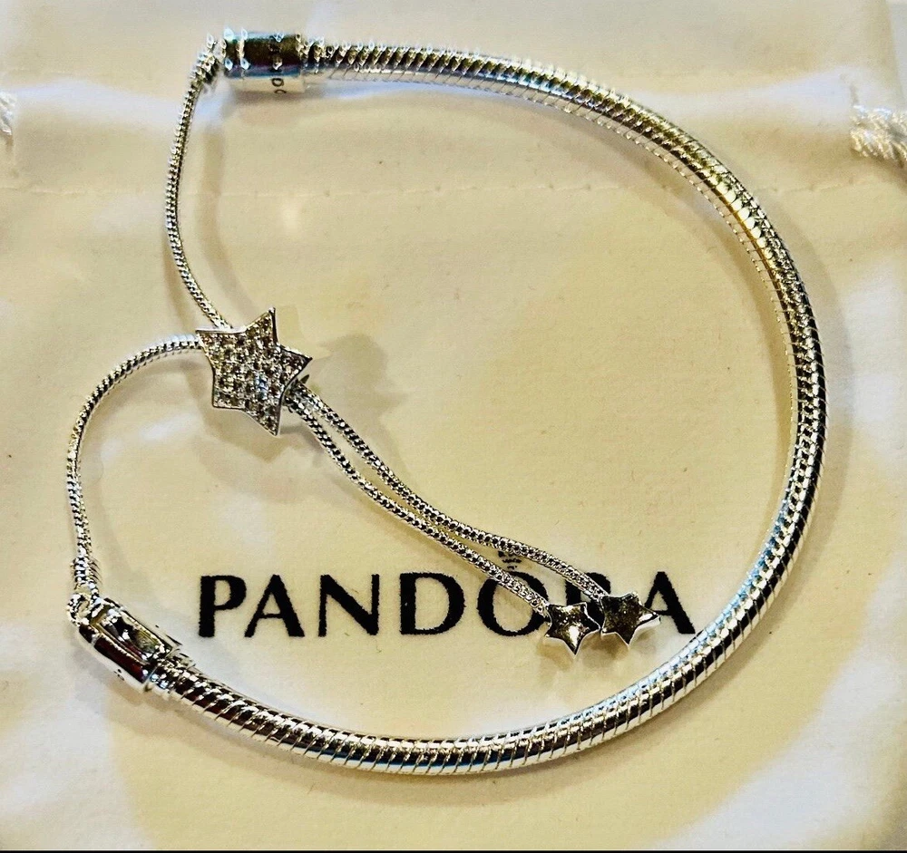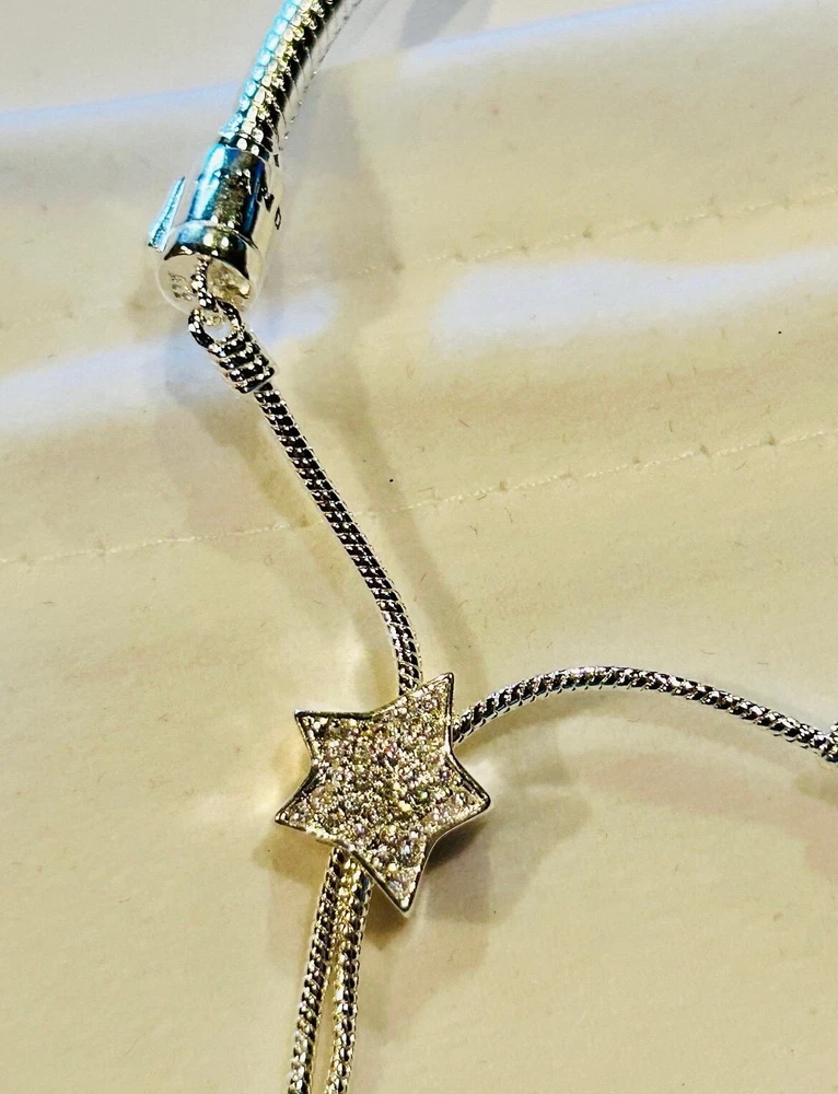 Main Stone Creation:Lab-CreatedCountry of Origin:ThailandType:BraceletMain Stone Shape:chipsSetting Style:PavéCountry/Region of Manufacture:ThailandMain Stone:Cubic ZirconiaColor:SilverBrand:PANDORAShape:StarClosure:SlideMain Stone Color:White/ColorlessMetal:SilverFeatures:AdjustableMetal Purity:s925Style:Pave SliderCharm Type:SlideMaterial:sterling silver