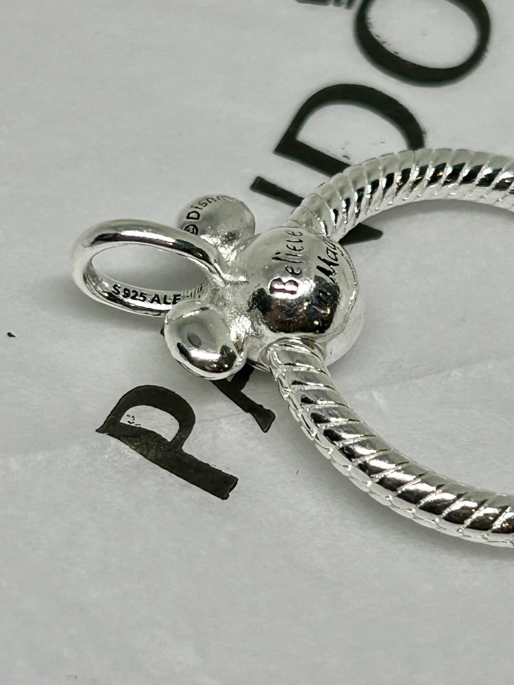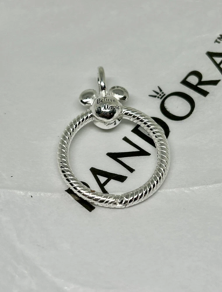 Pandora Mickey Mouse O Pendant New with tag and dust bag S925 Sterling Silver ALE Quarter for size comparison Comes