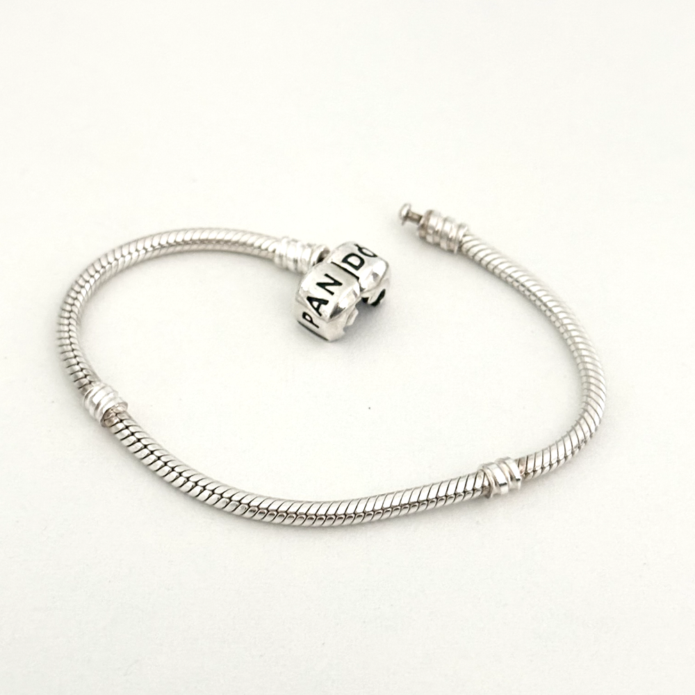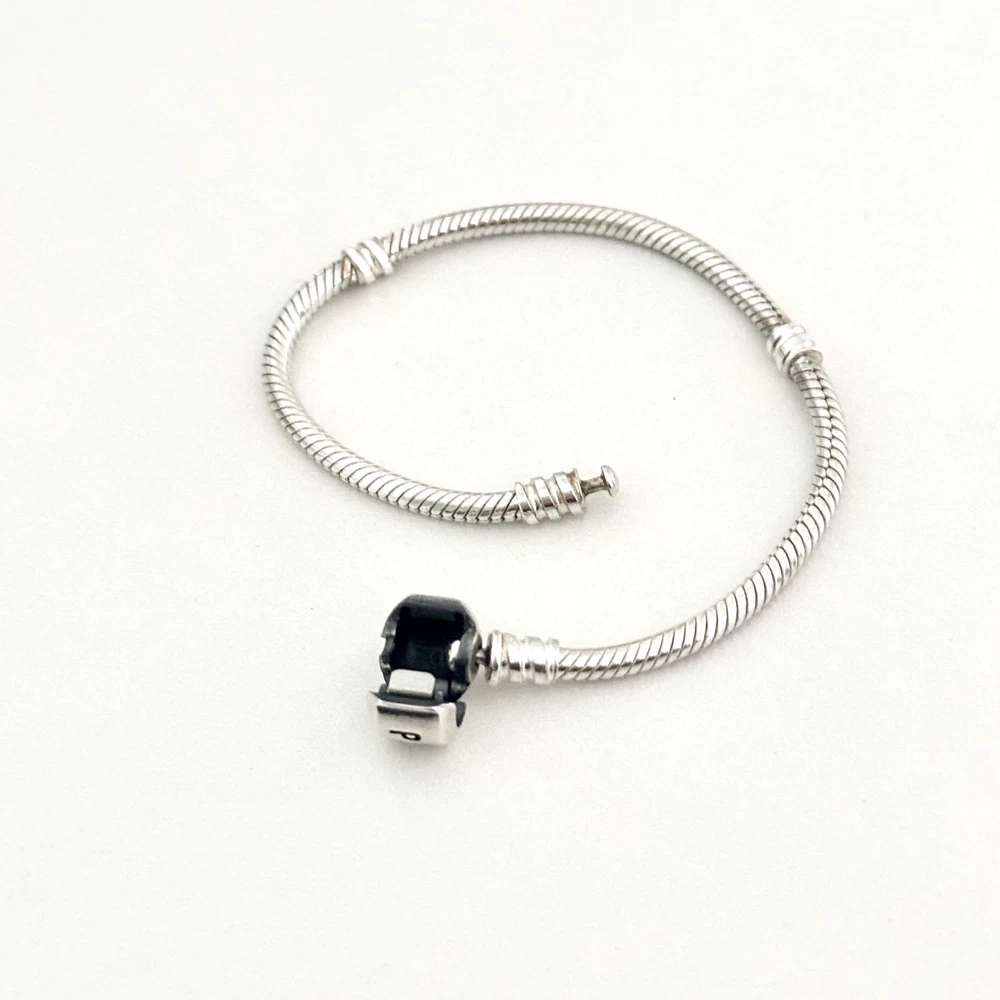 Pandora 925 Sterling Silver Moments Snake Chain Barrel Clasp Charm Bracelet 7.5"