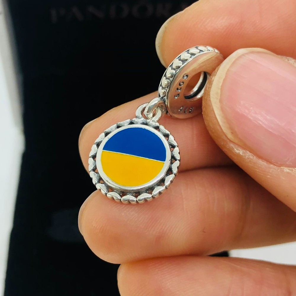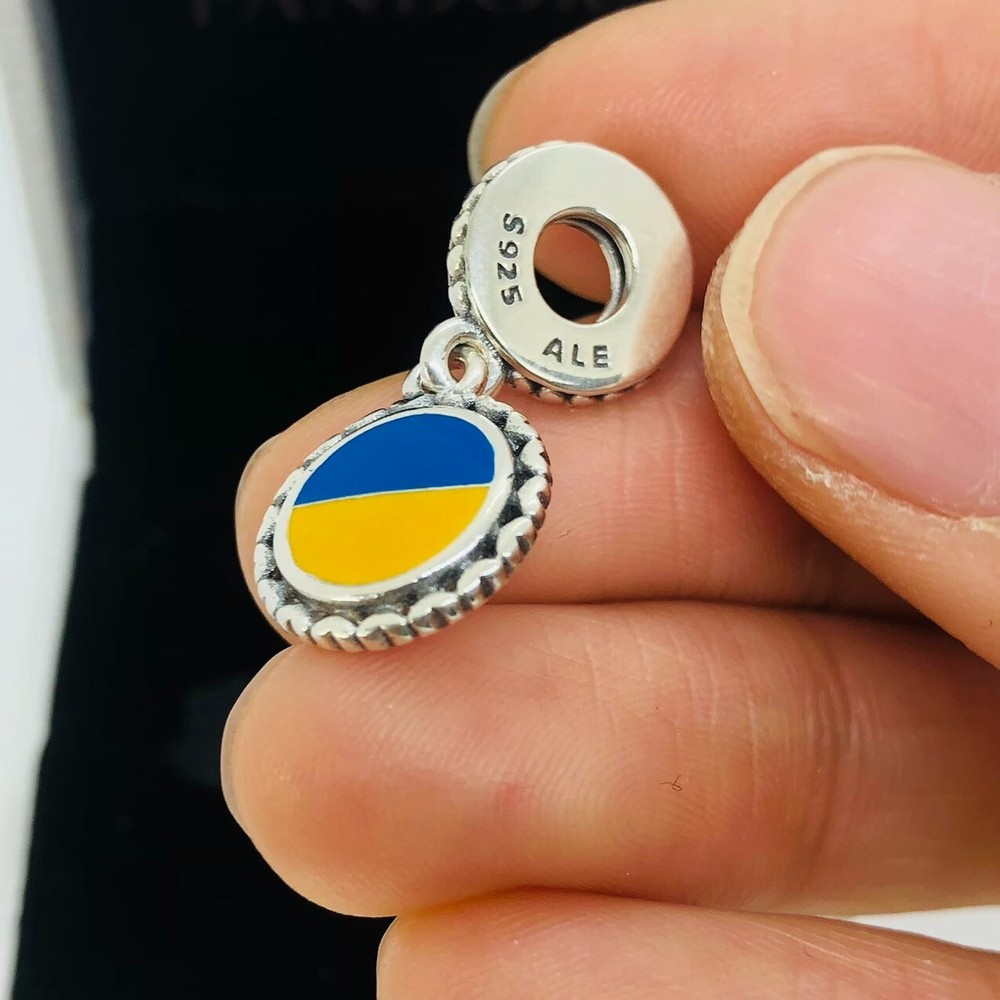 Pandora Ukraine Flag Charm in S925 Sterling Silver Jewelry Collection