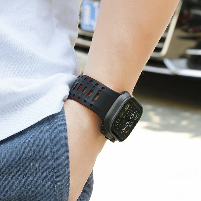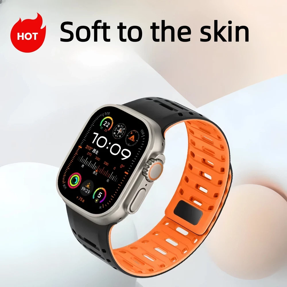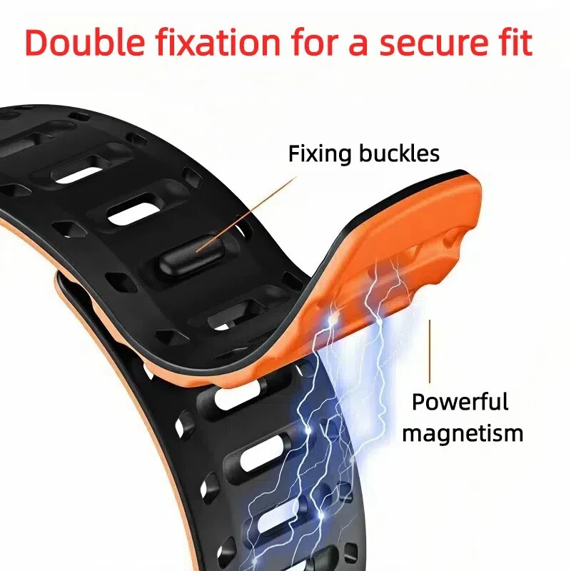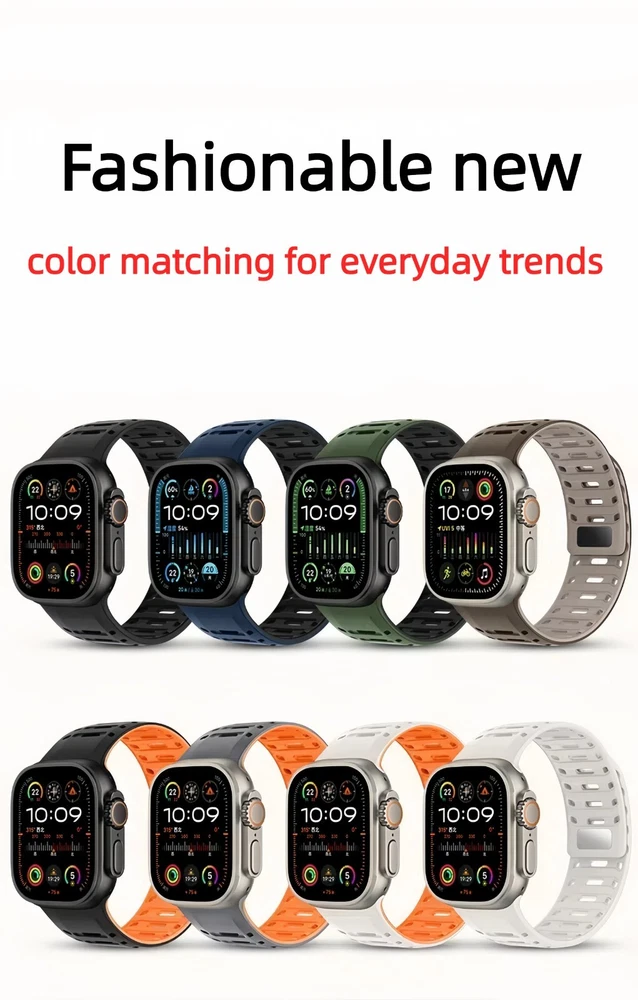 Pangolin armor magnetic silicone strap for Apple Watch 10 9 8 Ultra 2 42/46/49mm Features: 【 High-quality Materials】 The pangolin magnetic silicone strap is molded with high-performance silicone, which is soft on the skin, more fashionable and comfortable, breathable, and not afraid of sweat. 【 Security & Easy to install】 The durable Pangolin Magnetic Silicone Wristband features a fastening buckle and a powerful magnetic attachment that prevents your Apple Watch from falling off and loosening. Upgraded connectors at both ends lock precisely and securely. No tools are required, simple and straightforward installation and one-click disassembly. 【 Suitable for all scenes】 It is suitable for a variety of scenarios, especially suitable for hiking, running, outdoor activities and other sports. Creating the ultimate sports watch for athletes of all types requires a unique approach. That's why the dedicated strap for outdoor adventures, endurance training, and water sports is as carefully crafted as the watch itself. 【 For Wrist Size 】 Suitable for 5.51"-8.26"(140mm-210mm) wrist. Compatible With: > For Apple Watch Ultra / Ultra 2 > For Apple Watch Series 10 / Series 9 / Series 8 / Series 7 / Series 6 / Series 5 / Series 4 / Series 3 / Series 2 / Series 1 / > For Apple Watch Nike > For Apple Watch Hermes > For Apple Watch SE Package Includes: 1xPCS Magnetic silicone strap ONLY!!! (PS: The Apple Watch is Not Included)