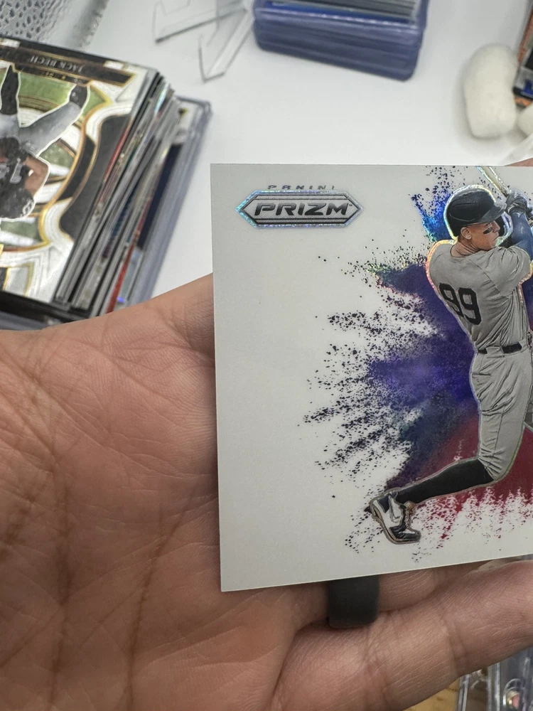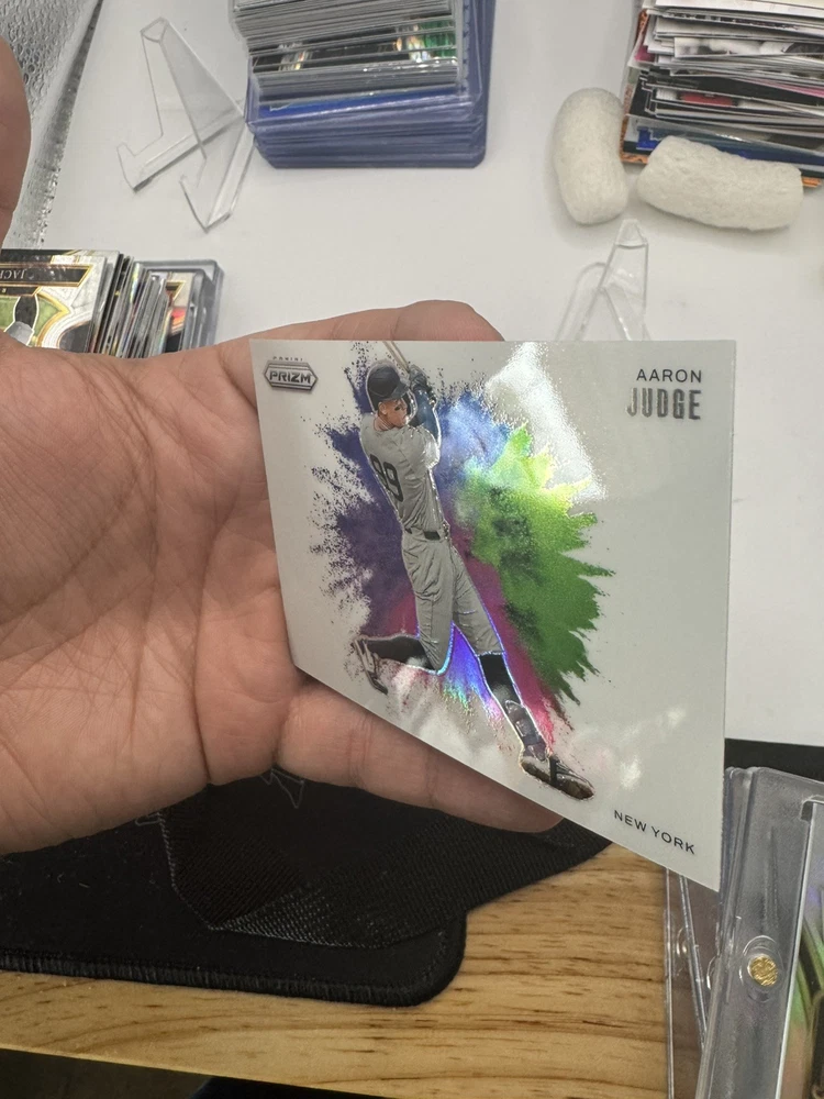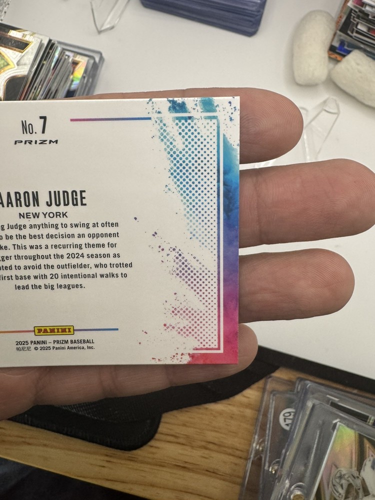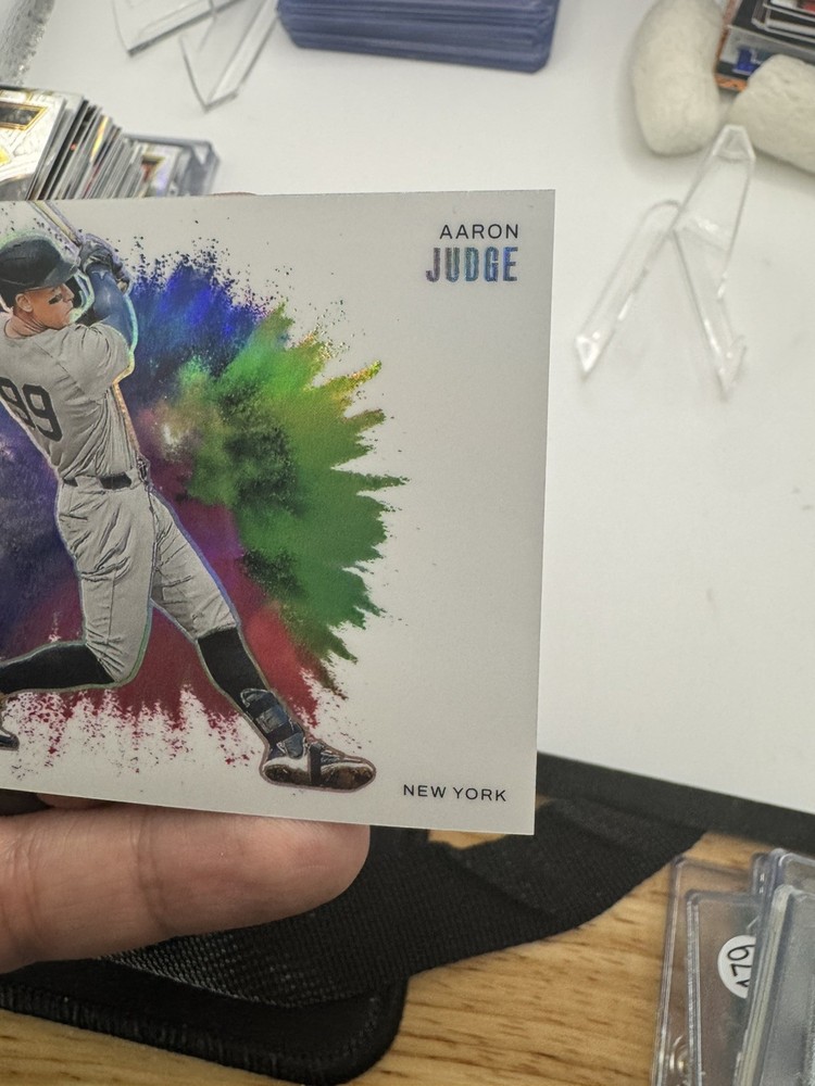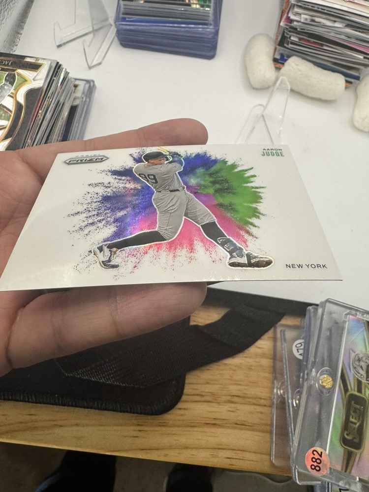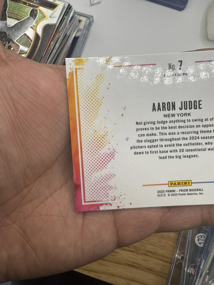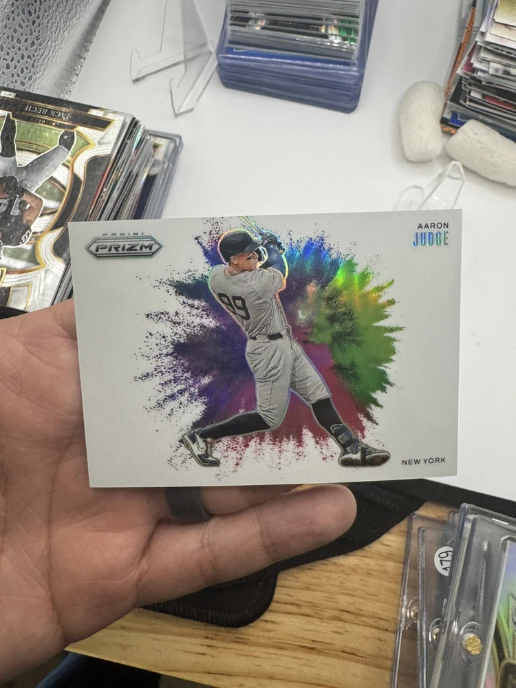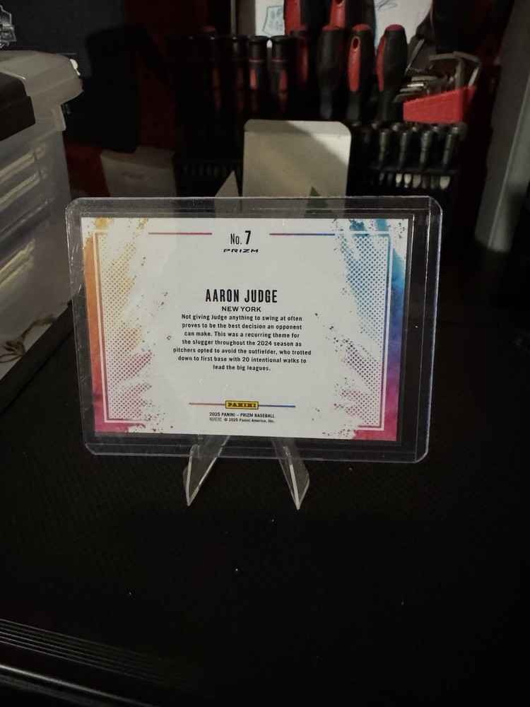 The Panini 2025 Prizm Color Blast Aaron Judge #7 baseball insert card is a sought-after collectible for fans of Major League Baseball. Manufactured by Panini in 2025, this standard-sized card features Aaron Judge from the New York team in the MLB. The card is made of card stock and is a part of the Color Blast insert set, adding a unique touch to any sports trading card collection. With its original design and near mint or better condition, this card is a valuable and visually appealing addition to any sports memorabilia collection.