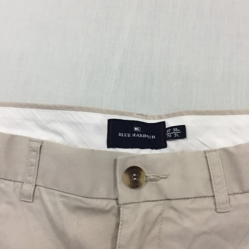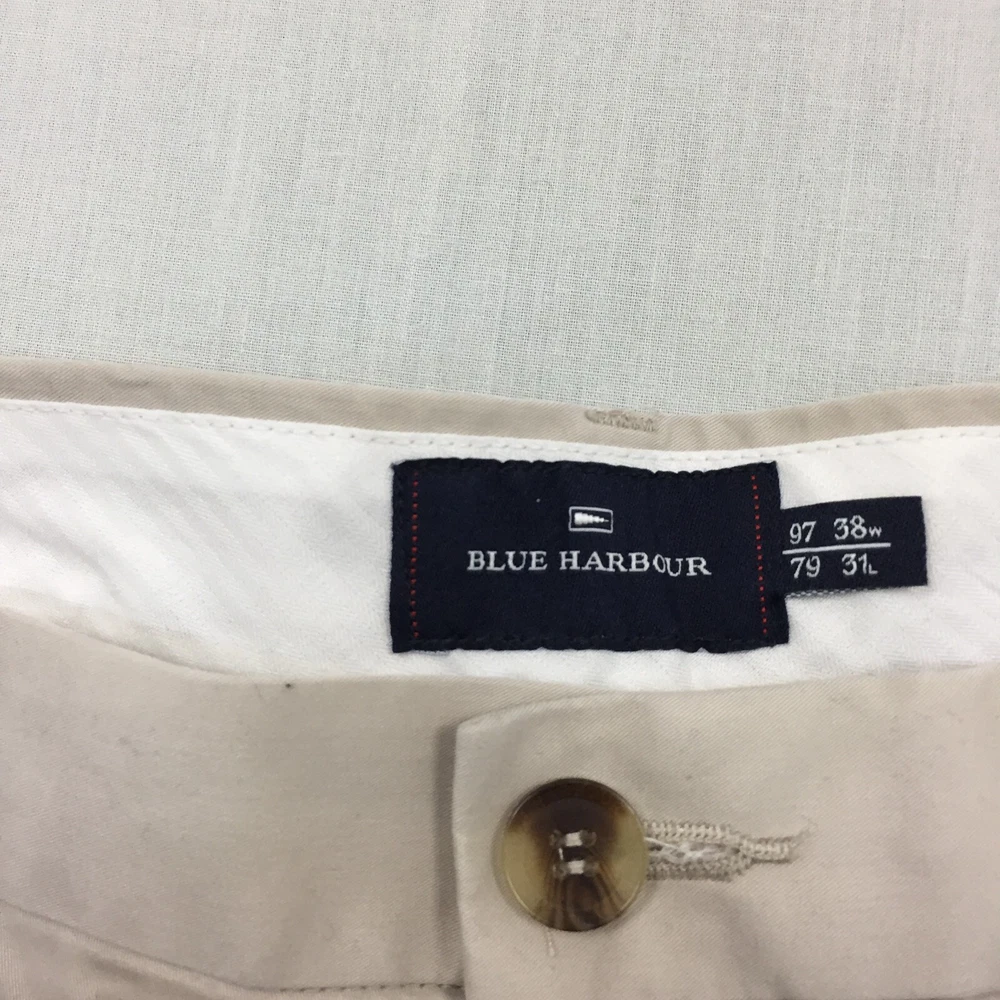Size Type: Regular Leg Style: Straight Season: Autumn, Spring, Summer, Winter Inside Leg: 31 in Country/Region of Manufacture: Unknown Style: Chino Department: Men Type: Trousers Handmade: No Notas del vendedor: “Good used condition, check below for full description & photos.” Colour: Beige Brand: Blue Harbour Pattern: No Pattern Vintage: No Garment Care: Machine Washable Estado del artículo: Usado Rise: Mid (10-12 in) Personalise: No Material: Cotton Blend Closure: Button Accents: Button Waist Size: 38 in Size: 38 Occasion: Business, Casual, Travel Pocket Type: Coin Pocket Fabric Type: Canvas Fit: Regular
