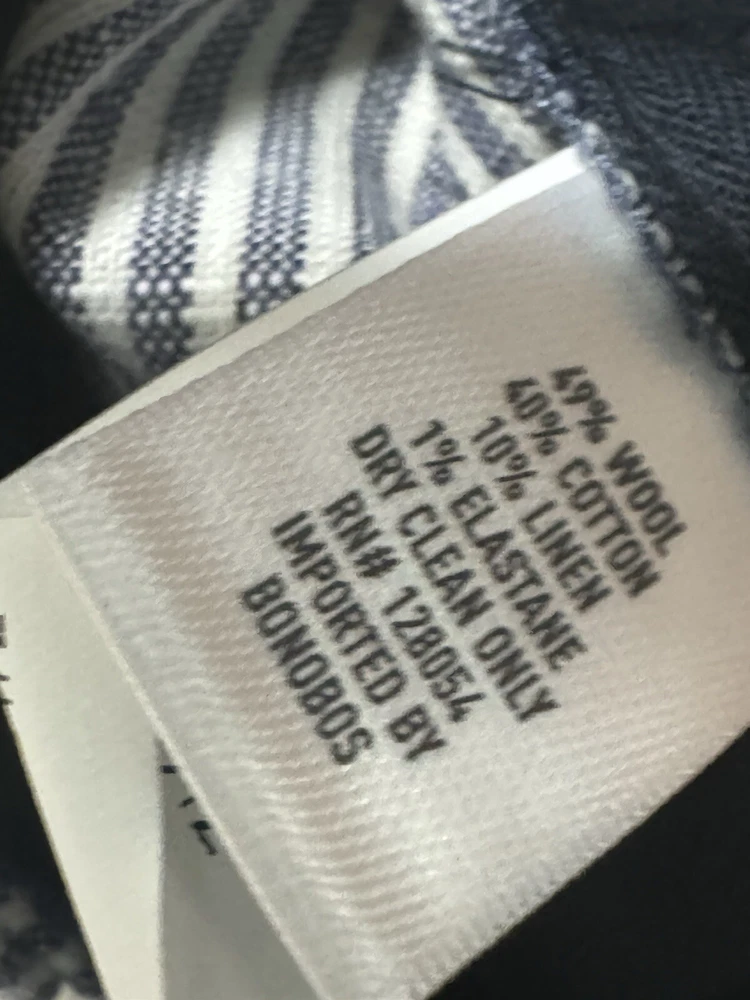 Pantalones Bonobos Tollegno 1900 para hombre talla 34 X 32 lana lino algodón ajustados a rayas