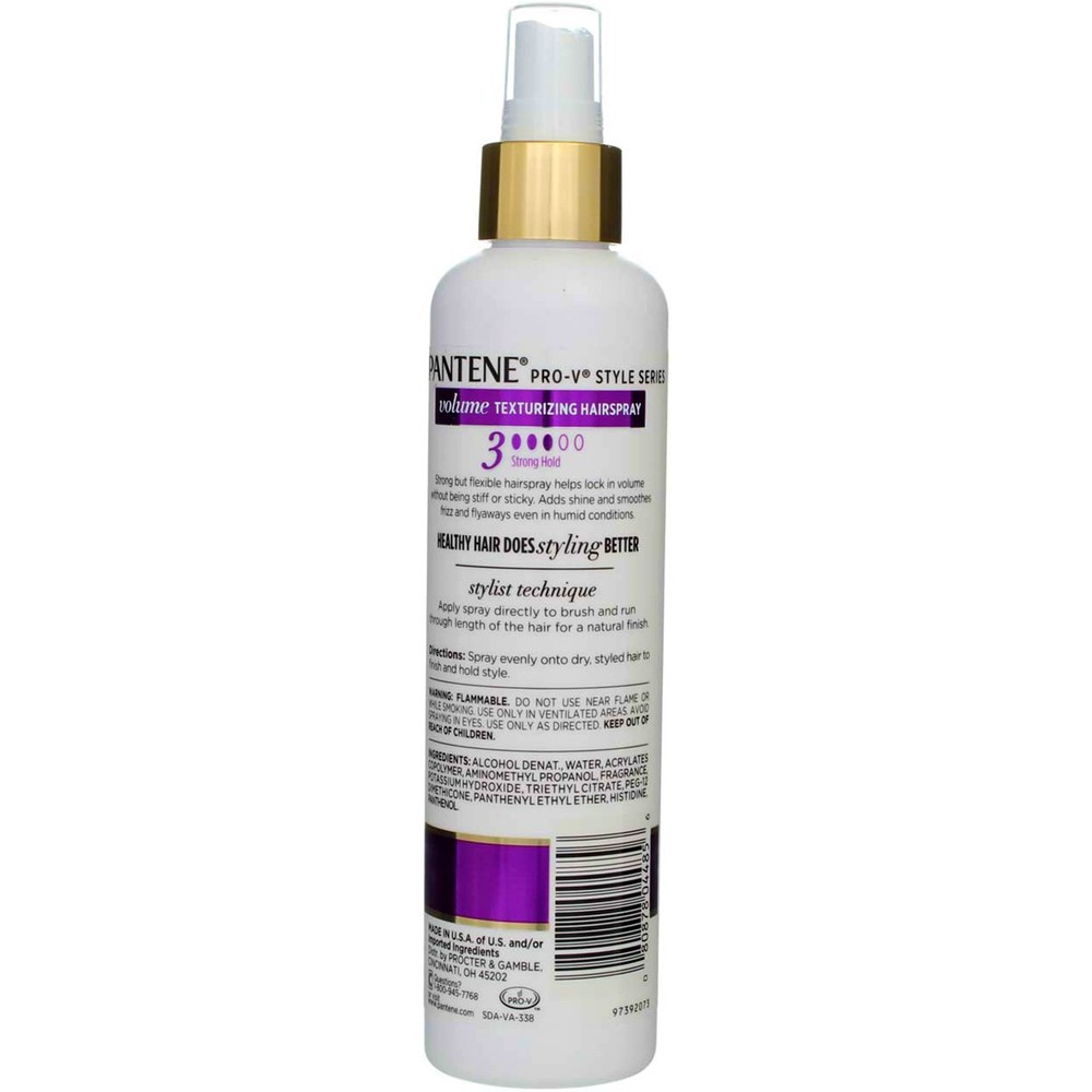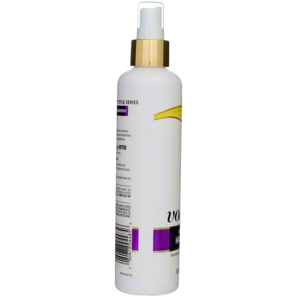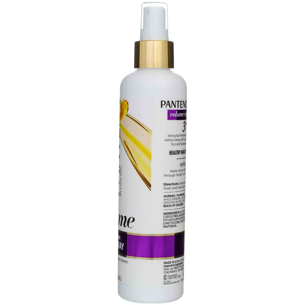 Product Description Flexible holding actives lift and support hair to add shine and create fullness without the weight. Touchable finished style is maintained all day without feeling stiff or sticky. Weightless all-day hold & radiant shine 3 Strong Hold 24 hour volume With Pro-Vitamins Ingredients Alcohol Denat, Water, Acrylates Copolymer, Aminomethyl Propanol, Fragrance, Triethyl Citrate, PEG-12, Dimethicone, Panthenol, Panthenyl Ethyl Ether. Instructions Work into hair with fingertips while damp, then blow-dry; this gives you volume and defined layers. How you get there: Spray evenly onto dry, styled hair to finish and hold style. Product Description Flexible holding actives lift and support hair to add shine and create fullness without the weight. Touchable finished style is maintained all day without feeling stiff or sticky. Weightless all-day hold & radiant shine 3 Strong Hold 24 hour volume With Pro-Vitamins Ingredients Alcohol Denat, Water, Acrylates Copolymer, Aminomethyl Propanol, Fragrance, Triethyl Citrate, PEG-12, Dimethicone, Panthenol, Panthenyl Ethyl Ether. Instructions Work into hair with fingertips while damp, then blow-dry; this gives you volume and defined layers. How you get there: Spray evenly onto dry, styled hair to finish and hold style. Warnings Safety Warning: Flammable. Do not use near flame or while smoking. Use only in ventilated areas. Avoid spraying in eyes. Use only as directed. Keep out of reach of children. Disclaimer The product descriptions and instructions provided by Vitabox are for informational purposes only and are qualified in their entirety by the information available from manufacturers of the products. You should carefully read all product packaging, and contact the manufacturer with any questions before using a product. While we endeavor to ensure that product descriptions are current, manufacturers sometimes change their products. We are not liable for inaccuracies or misstatements about products. We do not provide medical advice or recommendations. You should not use the information provided by Vitabox for diagnosing or treating a health problem or disease. If you have or suspect that you have a medical problem, immediately contact your health care provider. Information and statements regarding dietary supplements have not been evaluated by the Food and Drug Administration or any other government agency and are not intended to diagnose, treat, cure, or prevent any disease.