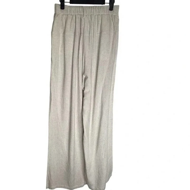 Elevate your style with these trendy wide-leg pants from Commense. Designed with a relaxed fit and made from a comfortable blend of 20% polyester and 80% cotton, these pants are perfect for any occasion, whether it's casual wear, workwear, or travel. The elastic back waist and pockets add convenience and style, making these pants a must-have for any fashion-forward woman. These pants come in a beautiful beige color and have a solid pattern that is perfect for any season. The flat front and mid-rise waist provide a flattering silhouette, while the wide-leg design adds a touch of streetwear style. These pants are easy to care for and machine washable, making them a practical addition to any wardrobe. Get ready to turn heads and feel comfortable in these stylish pants from Commense. 20% Polyester 80% Cotton Waist: 13 3/4 inches lying flat across Inseam: 30 inches...measurements approximate