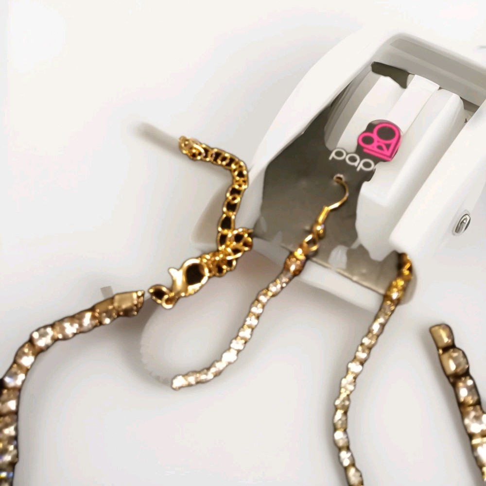 Brand: Paparazzi Material: Crystal Main Stone Color: irredescent crystals Wholesale: No Set Includes: Necklace Seller Warranty: No Personalize: No Color: Gold Materials sourced from: China Handmade: No Customized: No Type: Jewelry Set Signed: No Metal: Unknown Main Stone Shape: Round Vintage: No Theme: Beauty Features: Adjustable Occasion: Anniversary, Birthday Antique: No Main Stone: Crystal