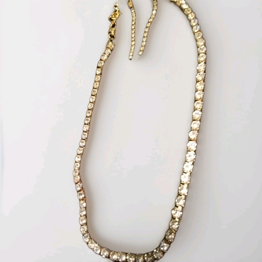 The Paparazzi Jewelry Gold Tone Drop Earring Necklace set features a stunning combination of gold tone and sparkling gemstones, perfect for special occasions like anniversaries and birthdays. The set includes a necklace with iridescent crystals as the main stone, adding a touch of beauty to the overall design. This jewelry set is adjustable and not vintage, making it a versatile and stylish addition to any outfit. Made with materials sourced from China, this set from the Paparazzi brand is sure to make a statement with its elegance and glamour. It intended For 14 yrs and up . Necklace is 16 long with 2" extender Earrings almost 2" with hooks closures.