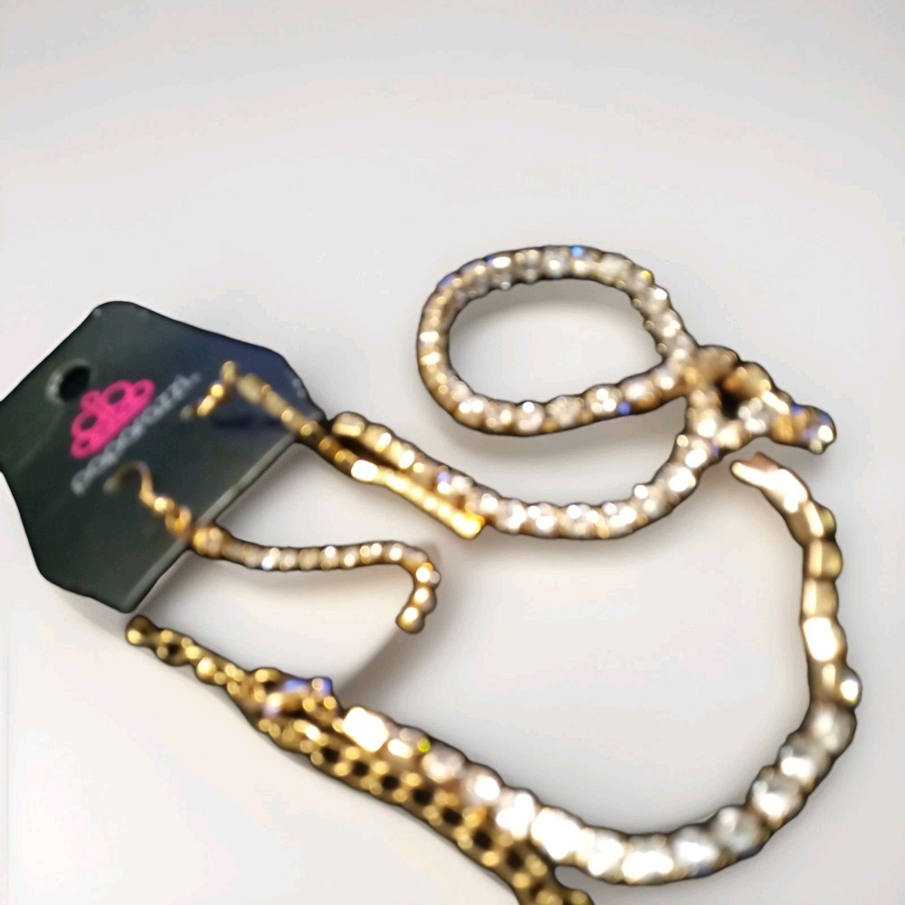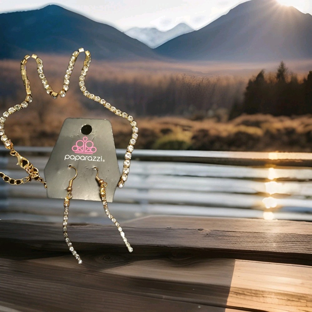 Paparazzi Jewelry Gold Tone Drop Earring Necklace Sparkling Gemstone New Set