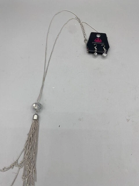 Elevate your jewelry collection with the Paparazzi Socialite of the Season Silver Necklace accompanied by matching earrings. This set exudes elegance with its shimmering silver hue, designed to add a touch of sophistication to any ensemble. The lobster clasp closure ensures a secure fit while the chain and pendant style offer a timeless appeal that complements both casual and formal looks. The necklace and earring set is an expression of contemporary fashion, perfect for those who appreciate beauty and style. Crafted with an eye for detail, this ensemble is a versatile addition to any wardrobe, suitable for a variety of occasions. Whether you're dressing up for a night out or accenting your daily outfit, this Paparazzi set is sure to make a statement.