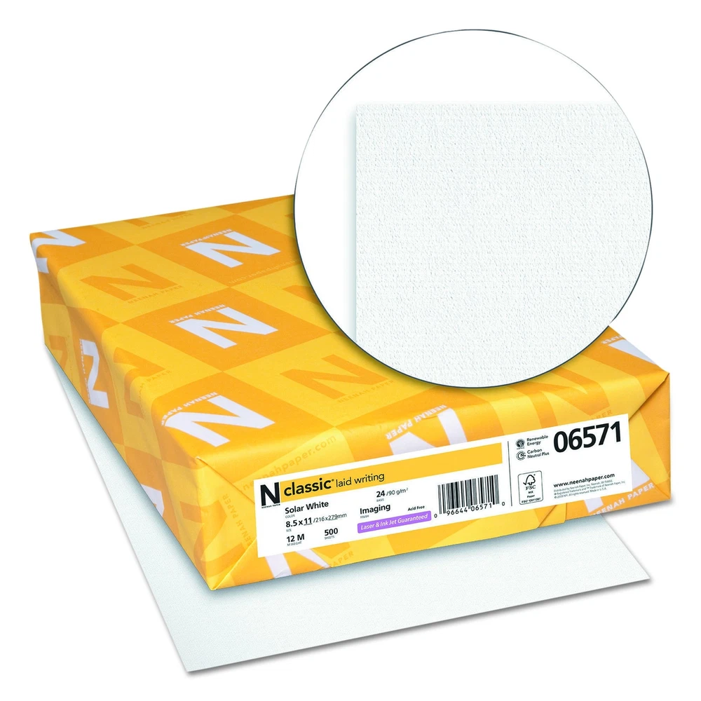 Paper 06571 CLASSIC Laid Writing Paper, 24lb, 97 Bright, 8 1/2 x 11, Solar Wh...