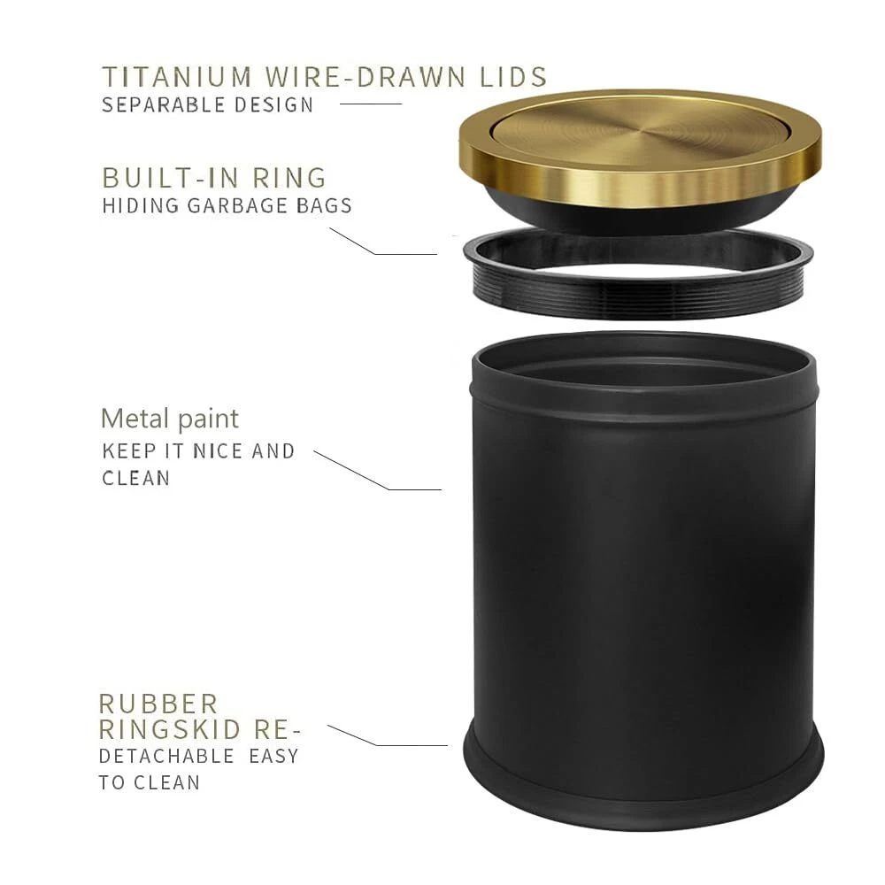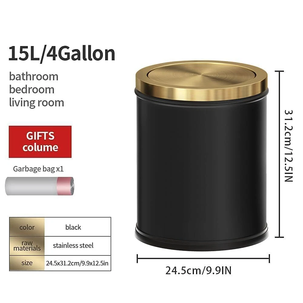 Product Description 4Gallon Stainless Steel Trash Can with Gold Shake Lid,Paper Backet with Flipping Lid, Garbage Can for Living Room,Kitchen,Bathroom,Office,Bank,Hotel(Black) ⭐【Gold Shake Lid 】 The swing lid design allows for flexible placement of confetti, making the desktop more tidy. The special swing lid design not only is convenient for you to use easily, but also can effectively reduce the spread of odors and isolate fruit flies. ⭐【15L/4Gallon for Any Room】 This elegant and durable garbage can with shake lid is suitable for any room, such as bathroom, toilet, restroom,bedroom, living room, kitchen, toilet, office, water closet and etc. ⭐【High Appearance Level 】 Multiple colors to choose from, elegant rose gold, white marble, classic black, classic gold and stainless steel, never out of style. ⭐【Quality Material】 The trash can is made of high quality stainless steel material, smoothly polished and Brushed, strong and durable,the garbage bin with shake lid is more convenient for dumping garbage. ⭐ 【Service】 If you have any questions, we are always at your service, we have been working hard to provide customers with better products and services. We offer a 99-day return policy so you can purchase with confidence About Us We are a reputable seller with many years of experience selling on eBay. Our goal is to provide high-quality products and excellent customer service. Shipping Items will be shipped within 1-3 business days when we received payment. (Orders are not processed on weekends & holidays) Tracking information will be sent once item is shipped. Delivery time depends on destination and other factors Item is shipped to ebay address. Leaving correct address can minimize delay. For international shipping and shipping to Guam, Hawaii and Alaska, Please contact us before placing the order. International buyers please note: Import duties, taxes and charges are not included in the item price or shipping charges. These charges are buyer’s responsibility. We will try our best to reduce the risk of the custom duties. Local pick-up is unavailable at the moment. Contact Us We reply any email messages within 1 business / working days(off-duty at weekend). If you do not get a response from us, then please check your junk or spam mailbox. Our Business hours: Mon-Fri 9:00-18:00, UTC/GMT +8 hours. Please contact us either by clicking "contact seller" in the "purchase history" section or simply click "ask a question" at the bottom of this page. If you are unsatisfied with our item or service, please contact us before leaving any feedback. We are committed to resolve all issues in a friendly and satisfactory manner.