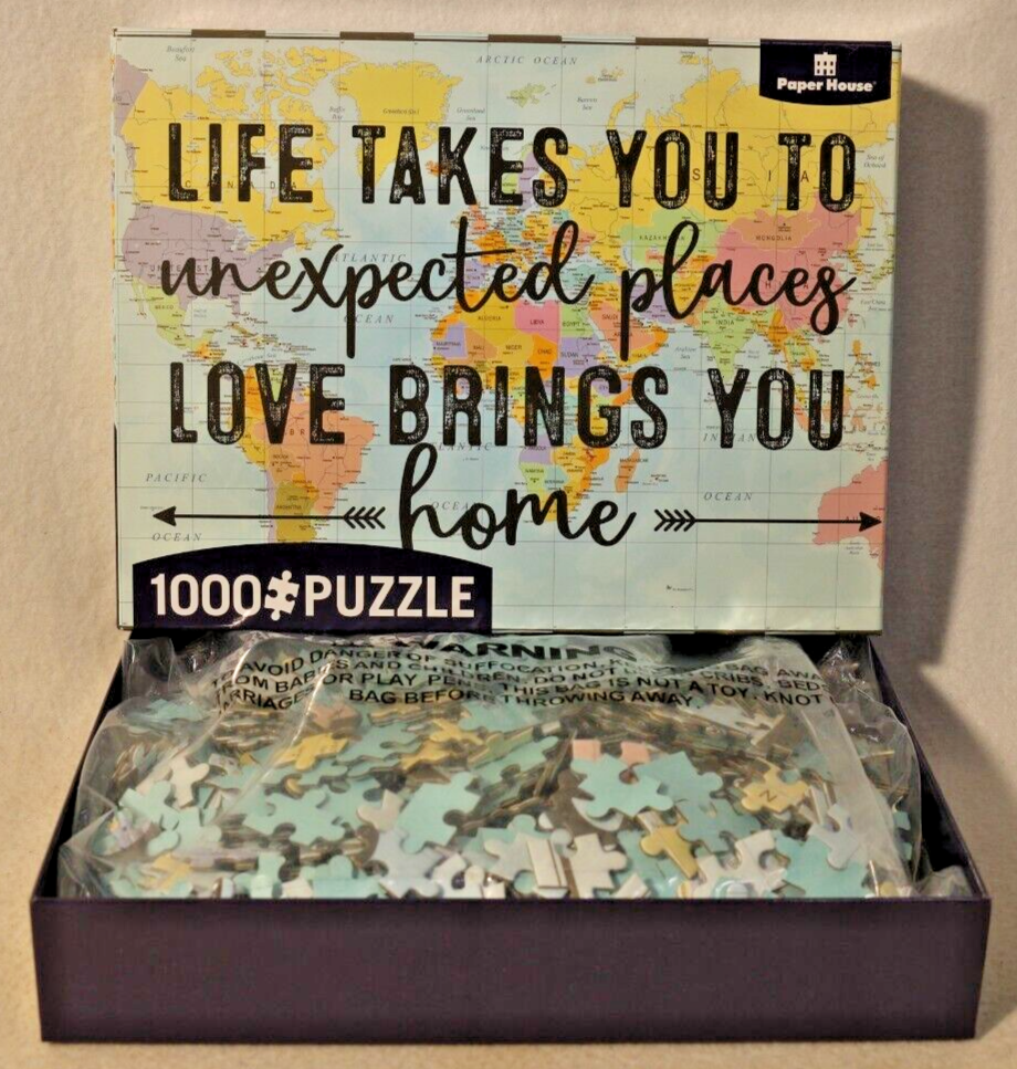 Challenge your mind with this colorful Paper House puzzle. With 1000 interlocking pieces, you'll have hours of fun piecing together a beautiful scene that celebrates love and the journey of life. The finished size is 29.5" x 20". The puzzle is crafted from durable cardboard and comes from a smoke-free home. This complete set is recommended for ages 10 and up. Manufactured in China, this puzzle carries a theme of love and travel, making it a perfect gift for puzzle enthusiasts and travelers alike. Let this puzzle take you to unexpected places and remind you that love always brings you home. We speak to this thought as a fact. Love will bring you home. Doing puzzles has some hidden benefits . Excellent qualities : Cultivate concentration, patience, and temper your will Movement development : Train hand-eye coordination and precise small movements Spatial intelligence : Improve visual discrimination of colors and shapes Critical thinking ability : Understand the relationship between parts and the whole, and draw inferences from one example to explore the future Relaxes your mind : Relieve work pressure and release yourself Brain development : Enhance memory and may help prevent or slow brain degeneration Puzzle pieces are all bagged. Each item we ship is carefully packaged to prevent any damage and is shipped immediately with tracking.