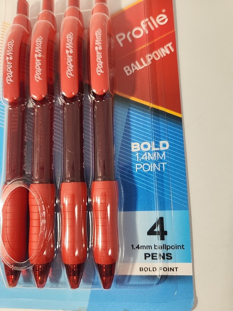 The Paper Mate Ballpoint Profile Comfort Grip Bold 1.4mm Red pens offer a comfortable grip and bold, red ink for easy writing. With a 1.4mm tip size, these pens provide smooth and precise writing experiences. The pack includes 4 pens, making it convenient for stocking up on supplies for both personal and professional use. Perfect for those who prefer a ballpoint pen for their writing needs, these Paper Mate pens are a reliable choice for everyday use.