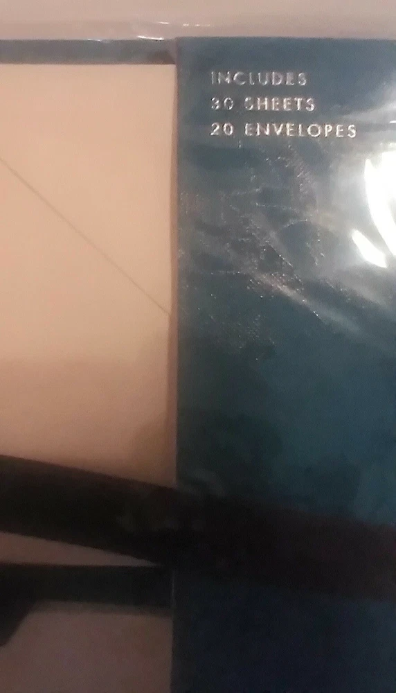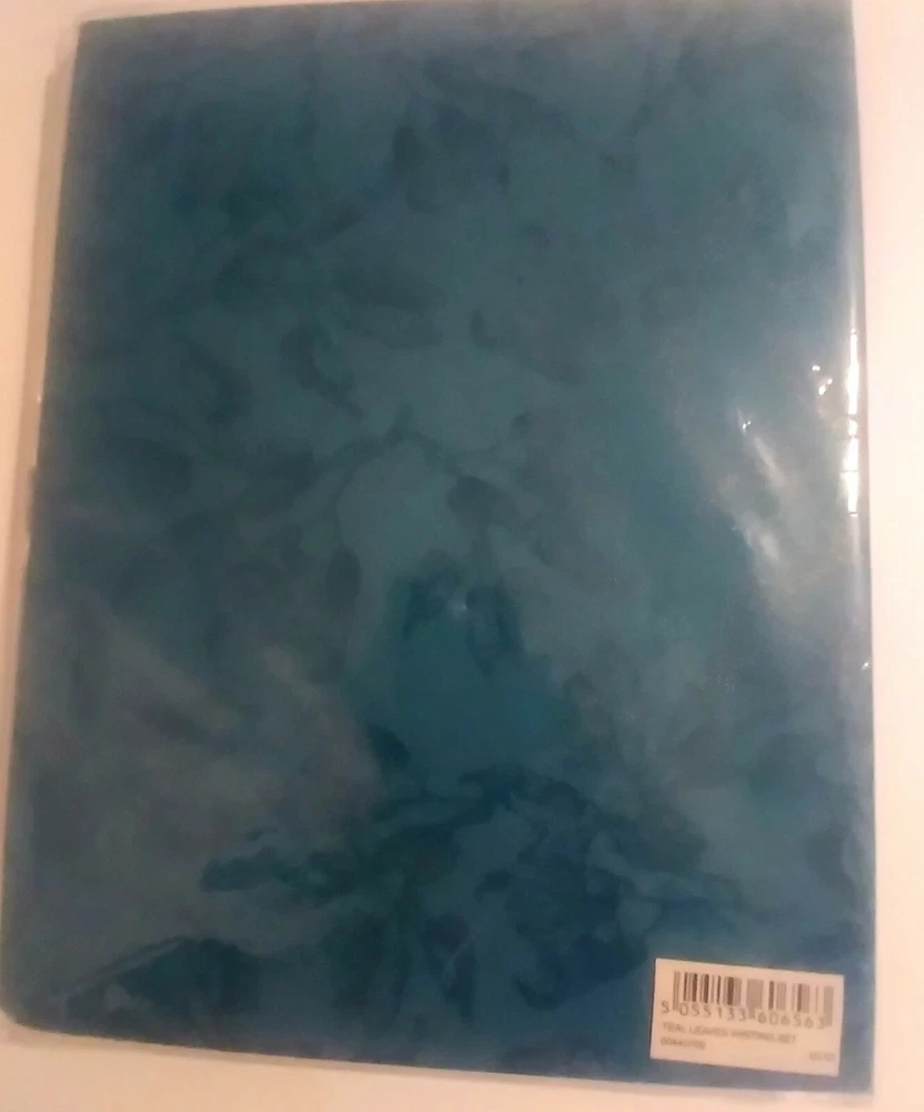 Paperchase Writing Set With Beautiful Holder Teal Leaves New. There are 30 sheets of paper/20 envelopes. The color of the holder is really lovely. This set is perfect for anyone who likes writing notes and letters the old way🙂. I bought this set several years ago while visiting my daughter in London. If you have any questions, please feel free to contact me.