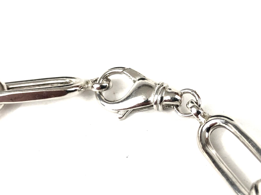 Paperclip Link Sterling Silver 925 Bracelet 9" Pre-Owned Fine Jewelry Paper Clip Type: Bracelet Length: 9" Width: 7.9 mm wide Weight: 12.5 gr Clasp: Lobster Hallmark: AK 925 Condition: Scattered light scratch nothing serious, clasp is secure, easy to polish Comments: A well made bracelet, nice and solid Please see all photos for details SO12CON