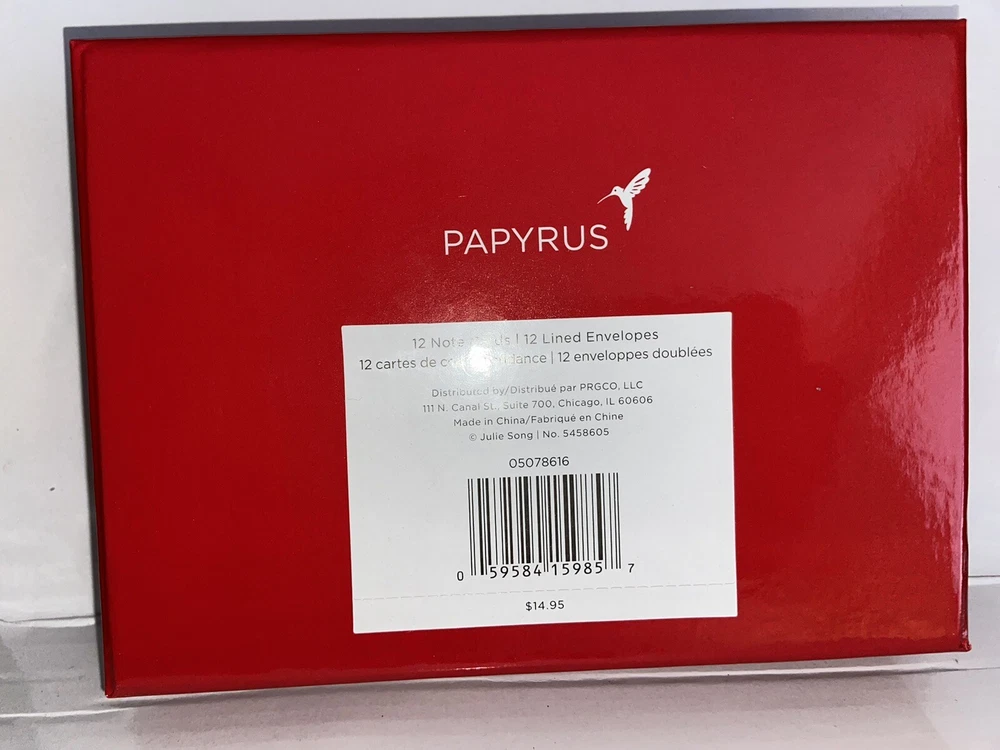Say "thank you" in a unique and elegant way with these Papyrus notecards. The boxed set includes 12 white notecards adorned with intricate red foil accents. Perfect for any occasion where gratitude is expressed, these cards will surely leave a lasting impression. The brand, Papyrus, is known for their high-quality paper products and attention to detail. Whether it's for personal correspondence or business purposes, these thank you cards are a great addition to any stationery collection. **Blank inside