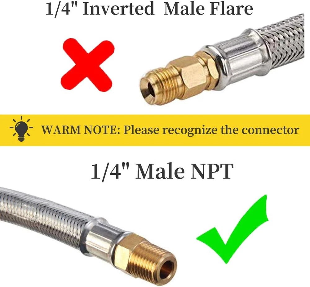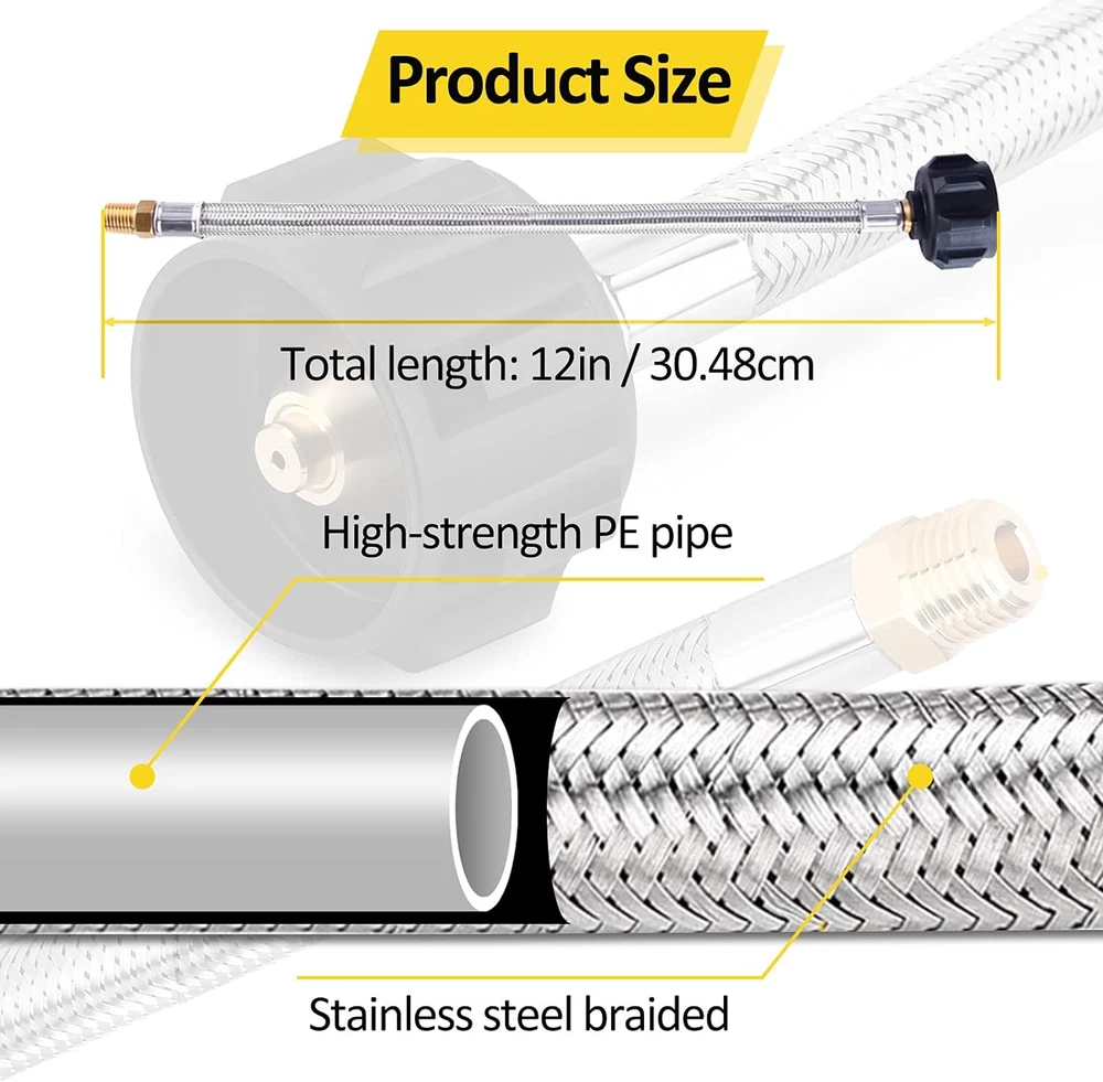 Store New Arrivals Add to Favorite View Feedback Contact 2 Pack 1/4 NPT RV Propane Hose, 12 Inch Stainless Steel Braided Propane Tank Pigtail Connector for Standard Two-Stage Regulator, 1/4" Male NPT & QCC1 (12 Inch) Description Item model number Hose Acme Material Stainless Steel Item Weight 0.39 Kilograms Item Length 12 Inches Outside Diameter 0.25 Inches Product Dimensions 12"L x 0.25"W Size 12 Inch 【Premium Quality】Strict quality stainless steel braid can maintain better and longer service life even when exposed to sunlight and rain, which can last twice as long as ordinary rubber hoses. 【Feature】Length-1 feet/12inch/30.5cm. Rated Capacity-200,000 BTUs per hour. Connection-QCC1/Type1 Male Connect and 1/4'' Male NPT. 【Compatible】Our 12" Supply hose lets you connect a 5-40 lb refillable propane tank to your camper's 1/4" NPT standard two-stage regulator.(CSA Certified) 【Notice】Our RV Propane Hose with1/4" male NPT(NOT 1/4" inverted flare), NOT FIT 2-stage auto-changeover regulator with 1/4" female inverted flare fittings. 【Package & Warranty】You will get 2pcs of 12 inch stainless steel pigtail braided RV propane hoses, including a roll of thread seal tape to make your installation conveniently.We provide a one-year warranty for the product, any questions, please . 12 inch Stainless Steel Braid RV Propane Hose Product description: Specification: 12inch/1ft, Acme x 1/4 Male NPT with type 1 connection. Condition: 100% brand new. Package includes: 2 x propane hose with one thread seal tape. Usage: Rated for 200,000 BTUs per hour. This hose let you connect a 5-40 lb refillable propane tank to your camper's propane regulator. Perfects for BBQ, RV and camping needs or having an outdoor cookout. Features: Braided stainless steel protects the thermoplastic hose from damage and holds up much better & longer when exposed to the sunlight and different weather. NOTE: Please check your connector before you order. Pay attention to the sharp edges of the pigtail when open the package and installing. Wearing gloves will protect your hands. Before installing the RV propane hose, please close the tank valve, and use tape to wind the joint. After the installation is completed, open the valve and use soapy water to test the joint, and confirm that there is no leakage before use. Safety first. ABOUT US We offer the best prices around on high quality products. Our E-store includes media such as books, movies, music and games while offering electronics, toys, sporting apparel, clothing, tools, general home, garden items and more. SHIPPING We are always working hard to ensure your package arrives as soon as possible. Please understand that some factors like weather, high postal traffic, and the performance of shipping companies are outside of our control. We offer free shipping to the lower 48 states and ship within 2 business days of payment, usually sooner. We do not accept P.O. Boxes. Please provide a physical address. For shipping outside of the continental USA, we only use eBay's Global Shipping Program.The item is shipped to KY and then sent to the rest of the world. International customers are responsible for all duties and taxes. Continue to check out in order to calculate costs for shipping the item to your country. Messages regarding eBay's Global Shipping Program MUST be directed at eBay EXCLUSIVELY. RETURNS We offer a 30-Day Return Policy on items which you are not completely satisfied with. You have the option for a full-refund or an exchange of the item. No returns are available on items shipped outside of the USA. PAYMENT We accept PayPal. CONTACT US This page content is yet to come Please ad us to your favorite seller and visit again later Thank You CUSTOMER SATISFACTION We try our very best to make sure every customer is completely satisfied. If there's a problem, message us! We're happy to help. WE ACCEPT Copyright © 2021 AutoDS. | All Rights Reserved