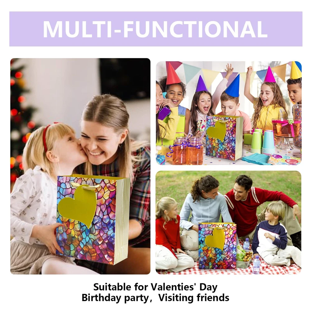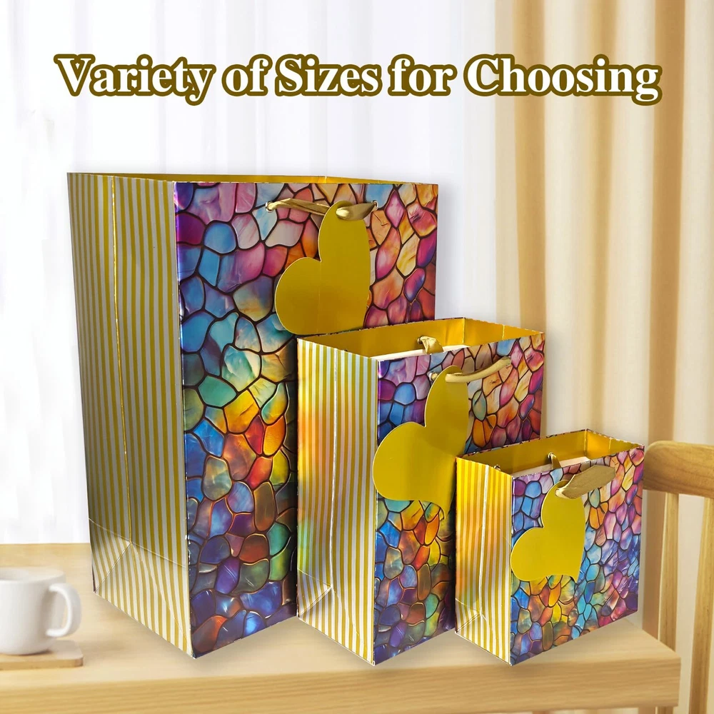 【Value Package】:These vibrant, colorful embossed seashell gift bags come in a variety of cheerful shades, making them perfect for birthdays, weddings, and other celebrations and special Days. The inclusion of handles is a thoughtful touch, making it easy to carry them around, even when filled with goodies. Each bag also comes with tissue paper, adding to the convenience. While they are not the most heavy-duty bags out there, they held up well for lighter gifts and party favors. and having 6 bags and 8pcs tissues in one package is a great deal. 【Exquisite Pattern】:Our gift bag combine exquisite pattern design with handle.It elevates your overall style by incorporate gorgeous elements ,no matter where you went and whatever you did,you always used it. 【Premium Gift bags】:The gift bags provides sturdiness and classfy, you can dress them either up or down depending on your needs. strong enough to accommodate some weight (a book or multiple items). You can use colorful tissue paper to wrap paper for gifts, what is more, you can diy all variety of art works. 【Use Widely】 : These delicate gift bags are suitable for birthday parties, Visting friends, weddings or other celebrations. Also suitable for shopping,wedding bags, party bags, graduations, Holiday, Valentine's Day, Mother's Day, Thanksgiving Day, and more. 【After-Sale Service】:If you have any problem about our product, please with us feel free,we will try our best to solve it for you,your saticfaction is the most motivation that we keep forward.