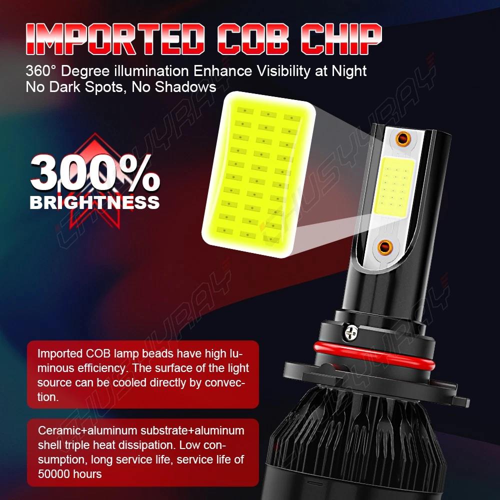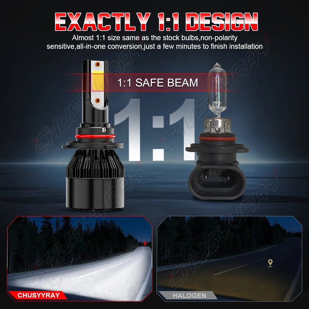 CHUSYYRAY Combo LED Headlight Bulbs H11/H9/H16 Low Beam +9005 High Beam 500% BRIGHTER THAN HALOGEN Utilizing upgrade 2pcs chips with cool white, the LED bulbs providing further and wider visibility for you to see the deer, wild animals, falling rocks or other obstacles in advance to ensure safer driving at night. PERFECT BEAM PATTERN This LED bulbs come with 0.03' ultra-thin centered light emitting, ensure a super focused beam pattern. With 360° adjustable locker ring, no glare to oncoming traffic, no dark spots, safe and reliable. AMERICAN SUPPORTED 9CBplus series bulb offer 1 year free replacement, Hassle-Free Return, Friendly US Local Customer Service in California. 5-MIN EASY INSTALLATION Non-Polarity, Plug and play. Perfectly fit into the housing without modification. Built-in driver, true all in one compact design. Save your time and effort. 50,0000 HOURS LIFESPAN 9CBplus series LED Bulb comes with a copper base board, cold pressed aluminum heat sink and 12,000rpm cooling fan, it provides a high efficient and reliable cooling system, keep the bulb running at its maximum potential. Better solve the dimming or over heated of bulbs. Important Notice: 1) Our LED replaces halogen bulbs only. It does not replace HID or LED from factory. 2) Need Canbus Decoder/ Resistor : These 9CB plus series LED bulbs can work well on most vehicles. But when they cause the flickering issue or error code on your vehicle, you will need one pair of the decoder to cancel the error Specifications Bulb Size: H11 & 9005/HB3 Light Mode: Single Beam Usage: Headlight Package includes: Combo Pack, 4x Bulbs, Voltage: DC 9-16V Light Power: 25W / bulb (50W/set) Luminous Flux: 2500LM / bulb (5000LM/set) Color Temperature: Bright White 6,000K Lifespan: Up to 50,000 hours Warranty: 1 Year Certification: IP67 Water and Dust Seal, CE, RoHS