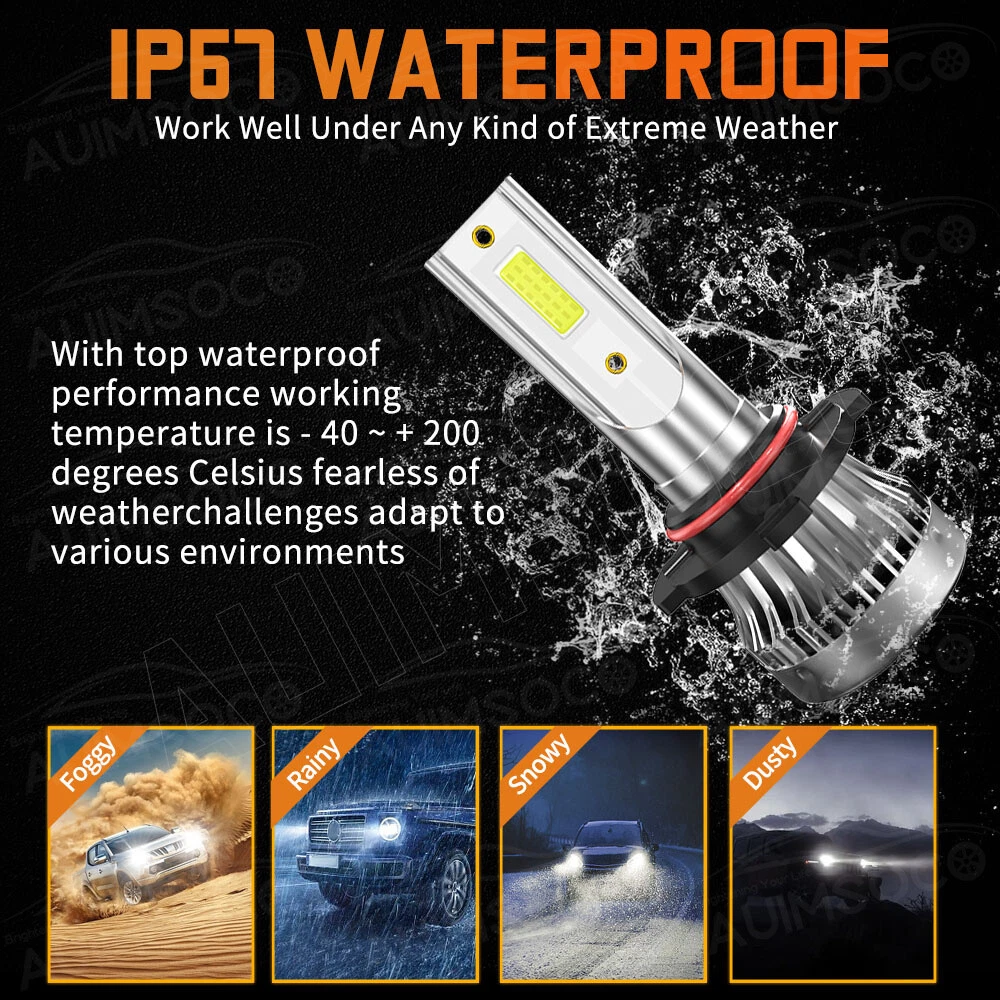 Description: AUIMSOCO LED Headlight Bulb Conversion Kit Upgrade Version 9005/HB3 High Beam + H11 Low Beam Replace Halogen Bulb Specifications: Plug Type: 9005 (High Beam) + H11 (Low Beam) Color Temperature: 6000K -Cold White Headlight Wattage: 40 W/Per Pair Headlight Lumens: 4000LM / Per Pair Working Voltage: DC 9V to 36V Material: Aviation 6063 Aluminum Pprofile Waterproof Level: IP68 Lifespan: > 50,000 Hours Automotive LED Bulbs advantages: 1. AUIMSOCO LED lights than traditional halogen energy, more bright . High focus and max light output with a wider and farther lighting area, Safer Night Driving. 2. Xenon lamp brightness and proximity , but the LED lights light up without delay, to enhance road safety. Instant start no strong currents impact , effectively protecting the car comes with a battery , improving battery life of more than 30%. 3. Fast cooling , the appearance of the most advanced design , thermal structure ingenious and reasonable.Power driver with wide voltage constant current mode , the car can respond to a variety of voltage instability , the effective protection of normal use Led efficient and simple structure. 4. Heating temperature is low , protect the car . Xenon working temperature up to 800 ° -1000 ° , the main reason for the car ignition 5. LED car headlights simple structure, fewer parts than xenon lamps, significantly lower than the xenon lamp failure rates ! Fog Light Specification: Bulb Size: H11 Usage: LED Fog Light Voltage: DC 12V-24V Power: 30W/per pair Lumen: 3000LM/per pair Color Temperature: 6000K Cold White LED Chips: AUIMSOCO customized LED chips Material: Heatsink aluminum shell Fanless: yes, no noise Lifespan: 50,000 hours Waterproof Rate: IP68 Warranty: 1 years warranty Package Includes: 1x Pair 9005/HB3 High Beam 1x Pair H11 Low Beam 1x Pair H11 Fog Lights Randomly send new and old packaging boxes Warm Tips: This model comes in multiple models, If you are not sure about the bulb size, please send us your vehicles' make/model/year via ebay message to confirm with us before purchasing. Any questions please feel free to contact us, we will help you solve it.