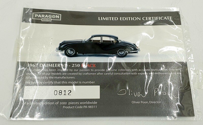Paragon 1/18 Scale Diecast DC26324A - 1967 Daimler V8 250 - Black Contact Us Home About Us Feedback Contact Us Add to favourites Paragon 1/18 Scale Diecast DC26324A - 1967 Daimler V8 250 - Black click thumbnails above to enlarge Shop Home Our Feedback Ask a Question Product Description 1/18 Scale Diecast Model by Paragon The MODEL is in GOOD condition, previously displayed, missing the motif - there is no outer box model is supplied with a display case - SEE IMAGES FOR BEST DESCRIPTION AND GRADING CONDITIONS Product Details Scale 1/18 Material Diecast Brand Paragon EAN 7427265169823 Additional Info GRADING CONDITIONS MINT - The item is in perfect condition. NEAR MINT - Almost perfect, any imperfections will be extremely minor. EXCELLENT - The item will have had very careful use, with only small imperfections. GOOD - The item will have had more use, showing obvious imperfections. FAIR - The item will have heavy signs of wear, showing major imperfections. SPARES or REPAIR - The item will be in a poor condition. Payment Shipping Returns About Us Methods of Payment Our preferred method of payment is Paypal. Any questions please ask! Thanks. WORLDWIDE MAIL-ORDER SPECIALISTS Shipping WORLDWIDE is FREE OF CHARGE. We ship from our warehouse is the UK. We ship worldwide everyday using a Tracked / Signed For service. Over 30 years of experience shipping collectible models worldwide - you can trust our service. Any questions, please ask. Thanks for looking ! Returns We hope you are completely satisfied with your purchase. In the unlikely event that there is a problem / fault with the item we will happily provide you with a refund (excluding returns postage). About Us R.M.Toys Ltd is a family led company with over 50 years worth of experience specialising in high quality collectable models & worldwide delivery. We have continued to expand and develop as the retail market and technology has evolved and we are in no doubt we will need to continue with that trend so we hope we have been able to showcase our service and provide you, our customer, with everything you have required. Our aim is to ensure no matter what the model, we will provide an excellent service experience. To us, this means great availability, excellent customer service as well as quick & secure delivery, to anywhere across the world. All that is left to say is Thank You for taking the time to read our page and using our company to assist with your collection and gift needs - every order placed is gratefully received and as important to us as the next. Kind Regards The RM Toys Team R.M.Toys Ltd - All Rights Reserved || Design by Tapika Store The MODEL is in GOOD condition, previously displayed, missing the motif - there is no outer box model is supplied with a display case - SEE IMAGES FOR BEST DESCRIPTION AND GRADING CONDITIONS