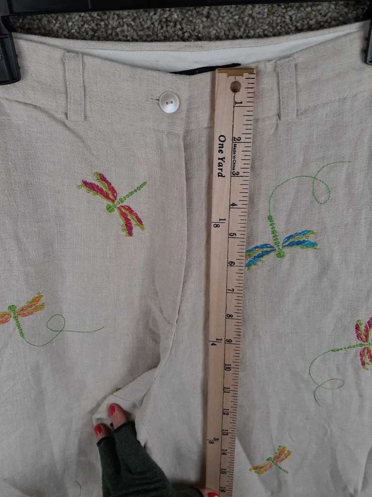 For Sale: A pair of Paraphrase Crop Linen Pant Womens 8 Beige Dragonfly Embroidered Pockets Boho Art Size: Women's 8 Measurements: Refer to photos above. In good gently used condition with no major flaws such as rips, tears, or stains. We ship items daily, so plan to receive your item(s) quickly! We also combine & discount shipping for orders with multiple items. From a smoke-free home. We accept domestic 30-day returns. We provide a variety of measurements on all items. Measurements are approximate and as close to accurate as possible but certain fabrics and styles can have a slight variation. Please be sure to check all measurements on used garments as they have been laundered and might vary from other items in the same style. Please message me with any question you may have, I answer most questions very quickly!