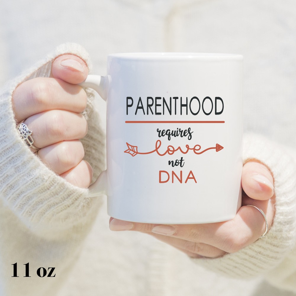 Parenthood Requires Love Not Dna Mug New Parents Mug Mom And Dad Mug Gift For Product Details.. This high quality 11oz. ceramic white mug has a premium hard coat that provides crisp and vibrant color reproduction sure to last for years. Perfect for all hot & cold beverages. The highest quality printing possible is used. It will never fade no matter how many times you wash it. Material: 100% Ceramic. Print both sides. Dishwasher and Microwave Safe. High Gloss + Premium White Finish. Printed in the U.S.A. Personalized & Custom. We support personalized and custom mug to add custom, when placing an order, you can add notes to the "order note" in shipping address section. Also you can contact us directly via message. Shipping Info. Ready to ship in 1 to 2 business days, All products are made-to-order and proudly printed in the United States. Shipped by USPS and DHL, You will receive your order in 5-7 days. Replace & Refund. All products are defective during shipping broken, chipped will be replaced free of charge. You are not satisfied with the product, we will refund 100% money to you. If any other issues arise, please do not hesitate to message, we would be more than happy to assist you.