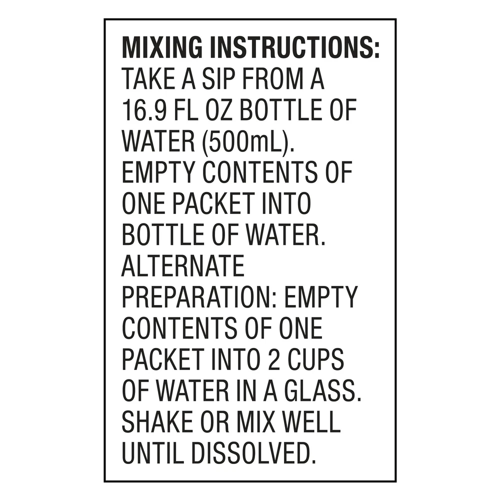 About this item Nutrition information Product details Great for kids over the age of 1* Use under medical supervision. *Not for use for children under 1 year of age. For Effective Rehydration Gluten-Free Parent's Choice Pediatric Electrolyte Powder helps replenish fluids and electrolytes that may have been depleted for reasons that include: Vomiting & Diarrhea Intense Exercise Heat Exhaustion Travel Parent's Choice Mixed Berry Pediatric Electrolyte Drink Mix is a convenient and delicious way to rehydrate your busy kids on the go. Our drink mix delivers electrolytes to replenish vital minerals and fluids and reduce dehydration caused by exercise, sickness, or heat exhaustion. This box includes 6 individual-sized packets that are perfect to take in a sports bag, backpack, or diaper bag for busy or active days. This formula includes probiotics for good digestive care and Stevia leaf extract that satisfies sweetness without the extra sugars found in juice boxes and sports beverages. Help your child replace essential fluids and minerals they need to thrive with Parent's Choice Mixed Berry Pediatric Electrolyte Drink Mix. Parent's Choice provides parents with baby and toddler products you need at a price that won't push your budget over the edge. We offer everything you need from bath time to bed time and every time in between, all with the high quality we know your little one needs. Parent's Choice is conveniently available online and in Walmart stores nationwide, allowing you to stock up, save money and live better. Parent's Choice Pediatric Electrolyte Liquid Drink Mix, Mixed Berry, 3.6 oz, (6 Pack): Mixed Berry Simply mix it into your coffee and enjoy All of our ingredients can be found in the Ingredient list image. Pomegranate Lemonade Drink Mix 3.6 oz Container This product comes in a Pack of 6 Gluten-Free