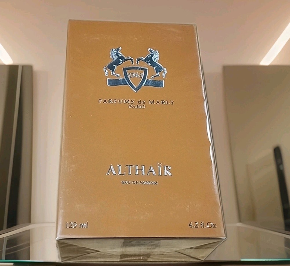 We are pleased to introduce the Parfums De Marly Althair Eau De Parfum, a new, sealed 125 ML (4.2 Fl Oz) offering. This fragrance, available through Scents Angel, masterfully blends classic and contemporary notes to exude confidence and refined masculinity. Its distinguished composition features an intriguing combination of vanilla, spices, and woody accords, creating an aura of understated elegance.
