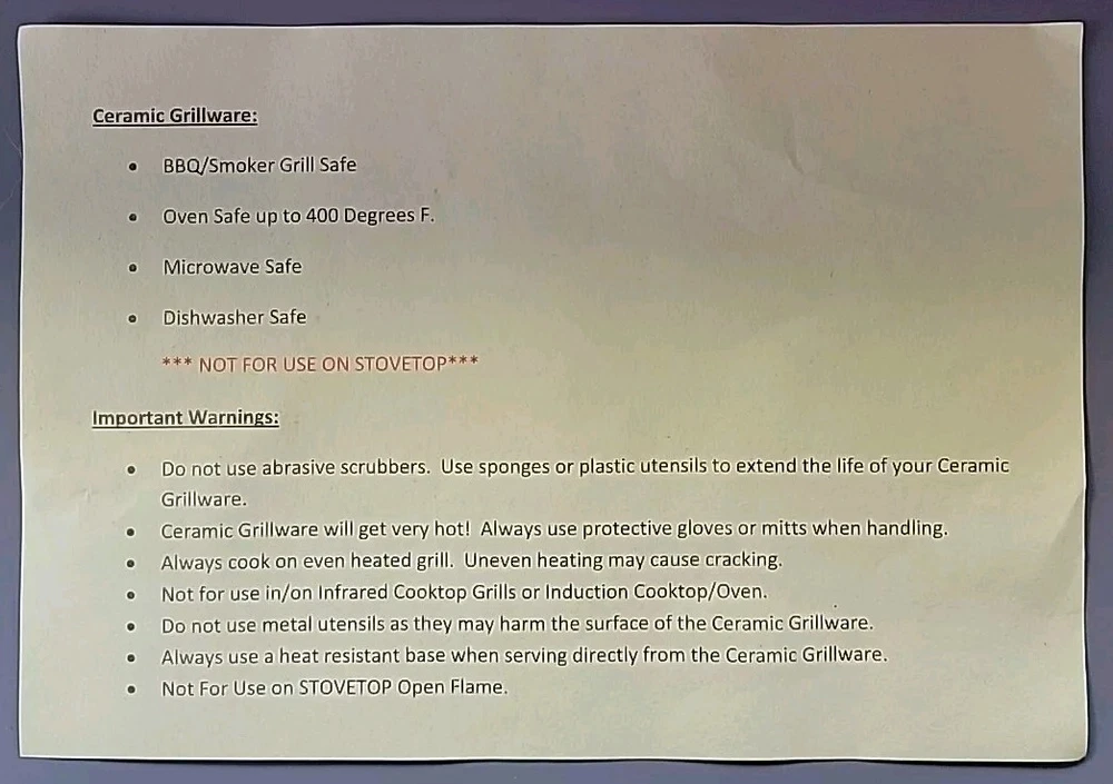 New With Open Box - Never Used. Introducing the Parini Ceramic Cookware For The Grill Casserole Pan, a high-quality addition to your kitchen. This pan is designed with a non-stick ceramic surface coating that ensures easy cooking and cleaning. The oval shape of the pan has a length of 14.5 inches, a width of 8.5 inches, and a depth of 2 inches, providing ample space for your grill casserole. The pan is compatible with all types of stoves, including electric, gas, and microwave ovens, with a heat resistance of up to 400°. It features a flat-bottomed design with double handles that make it easy to carry and dishwasher safe. The set includes one casserole pan, and it is made of high-quality ceramic material. Get ready to cook delicious grill casseroles with this Parini Ceramic Cookware for the Grill Casserole Pan!