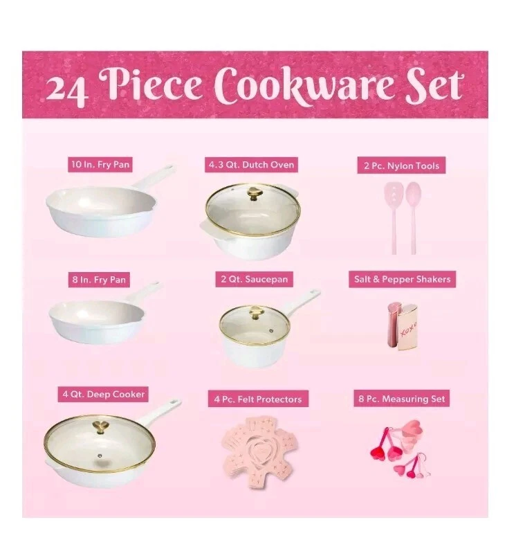 Paris Hilton 24-piece Ceramic Pot And Pan Set White Rainbow