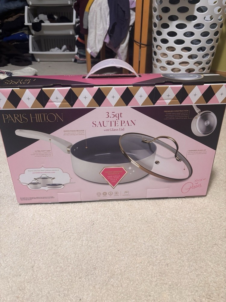 The Paris Hilton 3.5 qt Sauce Pan / Saute Pan is a stylish and versatile addition to any kitchen. This ceramic non-stick pan features a round shape and a luxurious gold color, adding a touch of elegance to your cooking routine. Compatible with induction, electric, and gas stoves, this pan includes a lid and is dishwasher safe for easy cleaning. With its brand prestige and high-quality features, this sauce pan/saute pan is perfect for any home chef looking to upgrade their cookware collection.